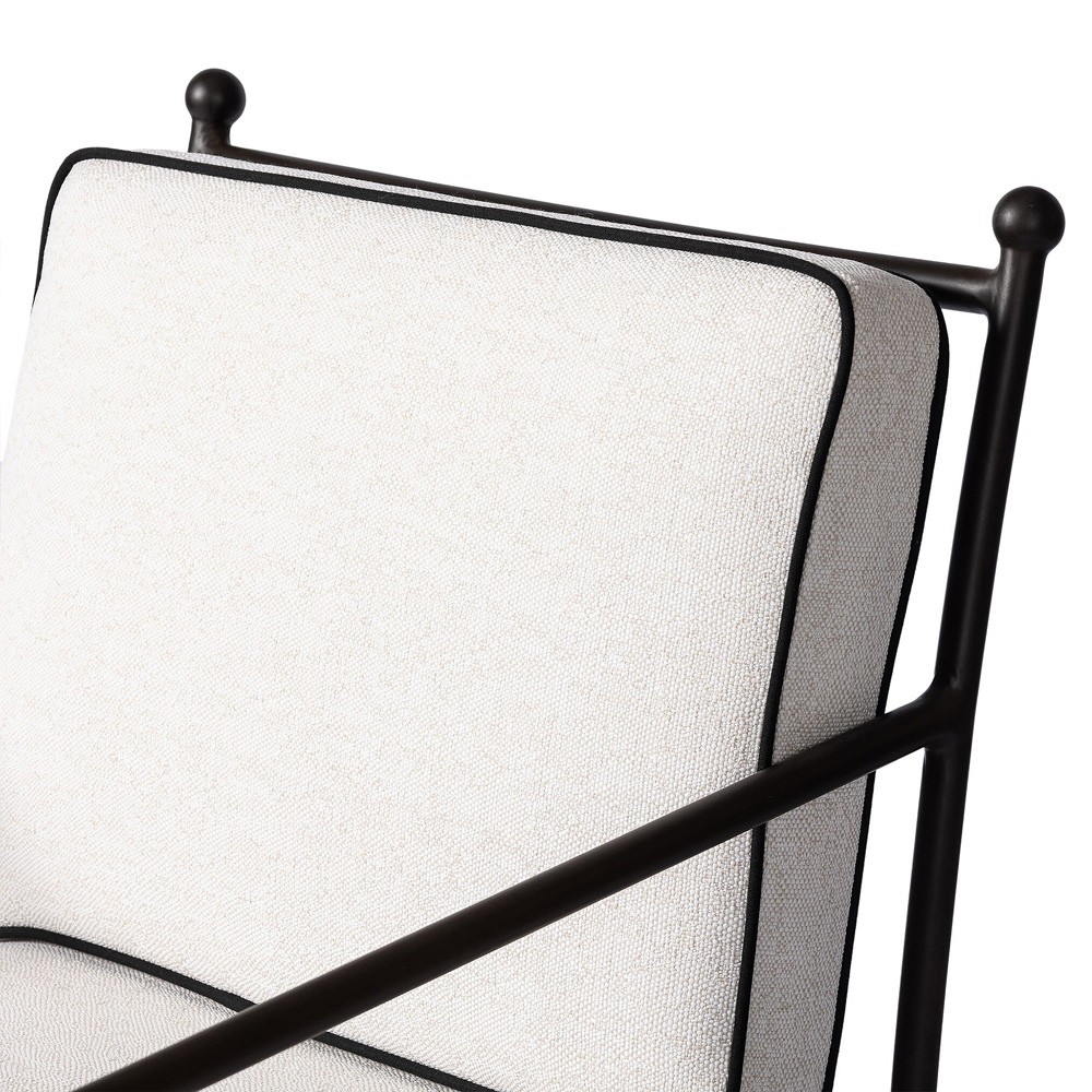 • Aurore Cream Cushion Black Welt Metal Outdoor Dining Arm Chair|Kathy Kuo Home