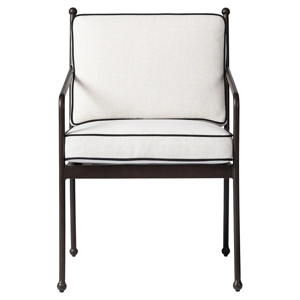 Aurore Cream Cushion Black Welt Metal Outdoor Dining Arm Chair