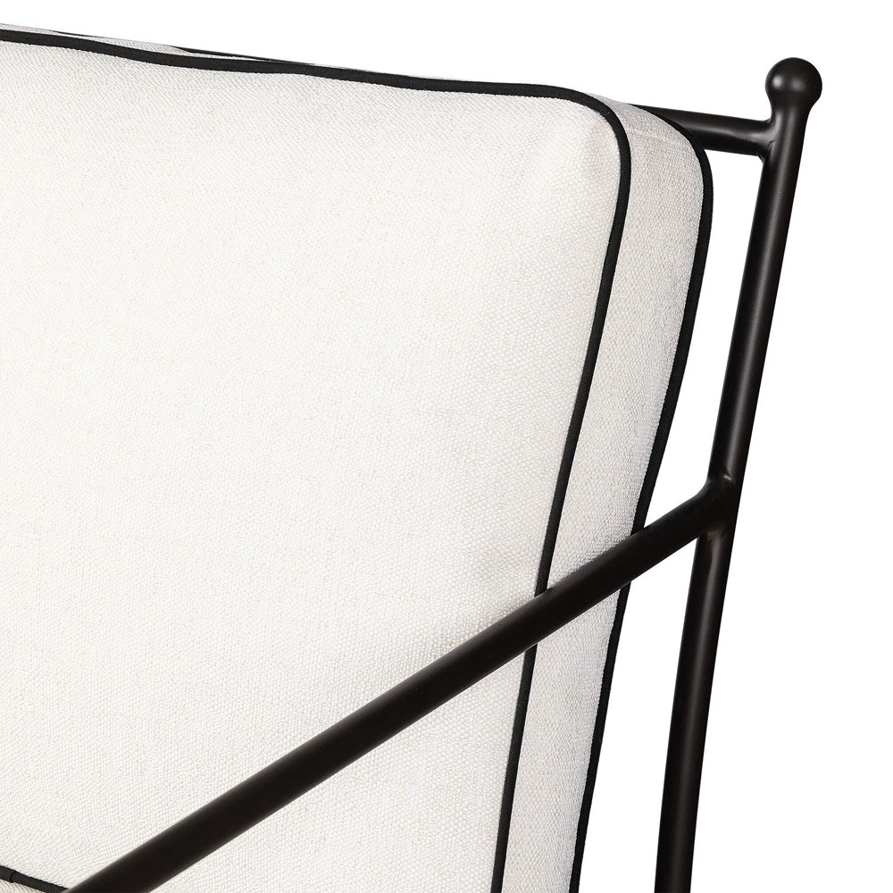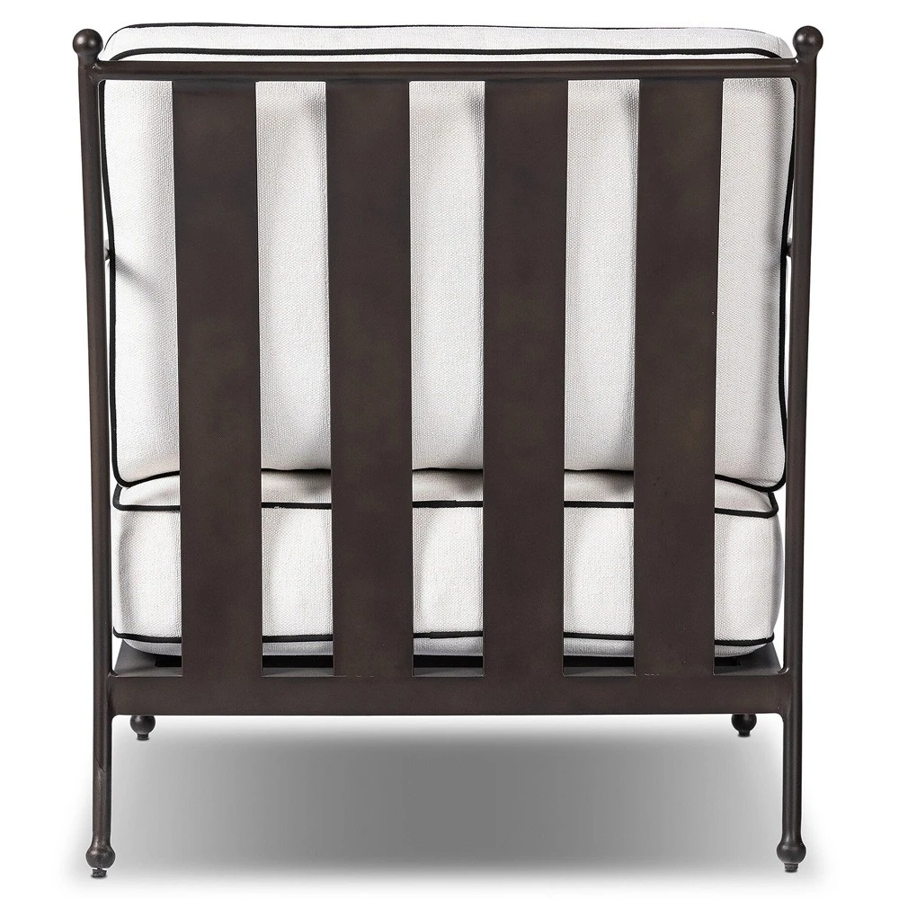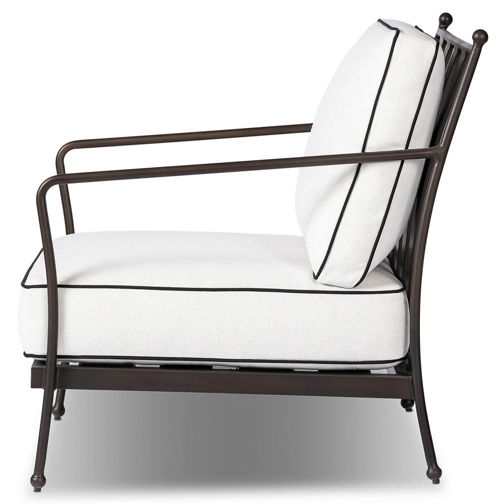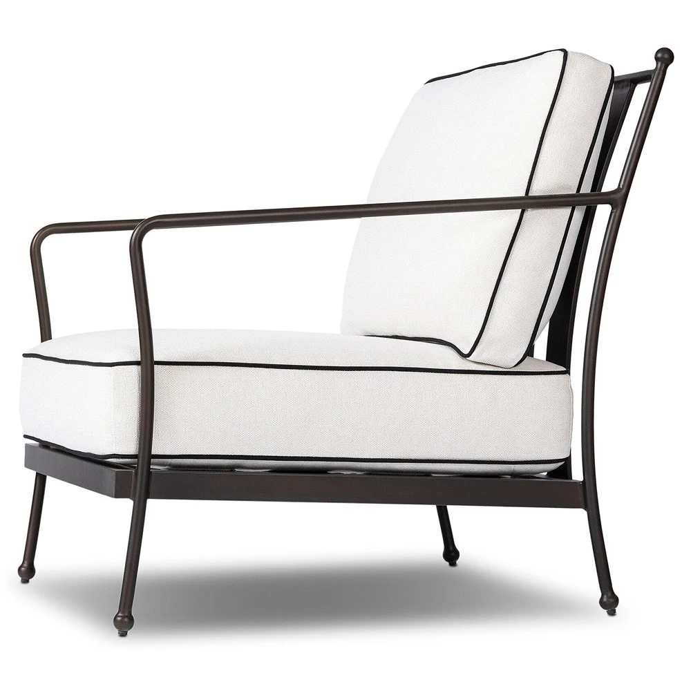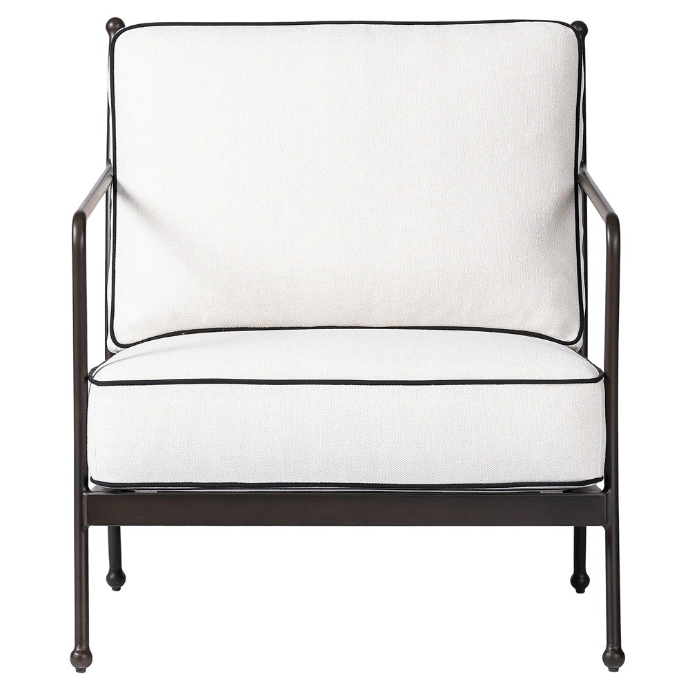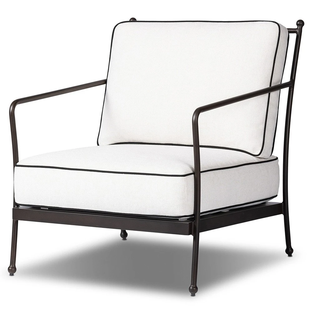Gretchen French Country White Upholstered Black Welt Aluminum Outdoor Lounge Chair