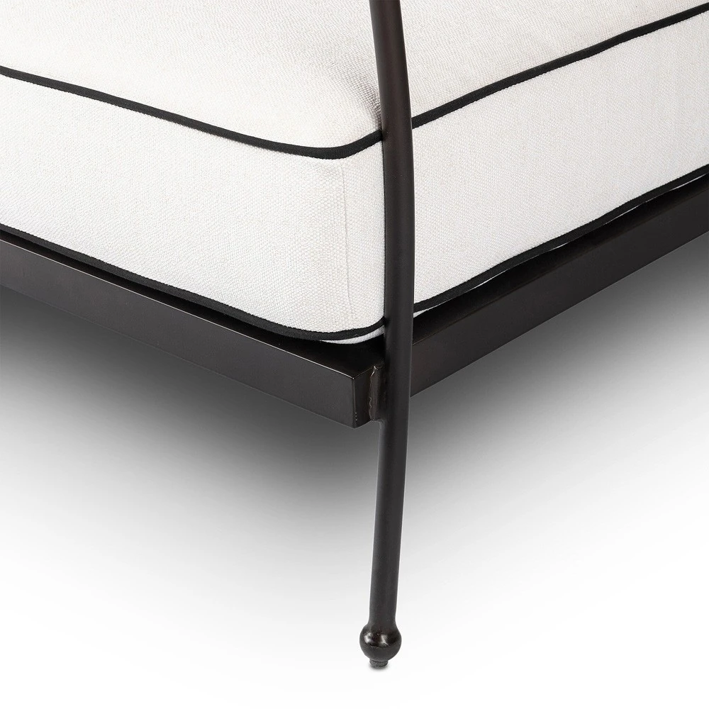 Gretchen French Country White Upholstered Black Welt Aluminum Outdoor Sofa - 76"