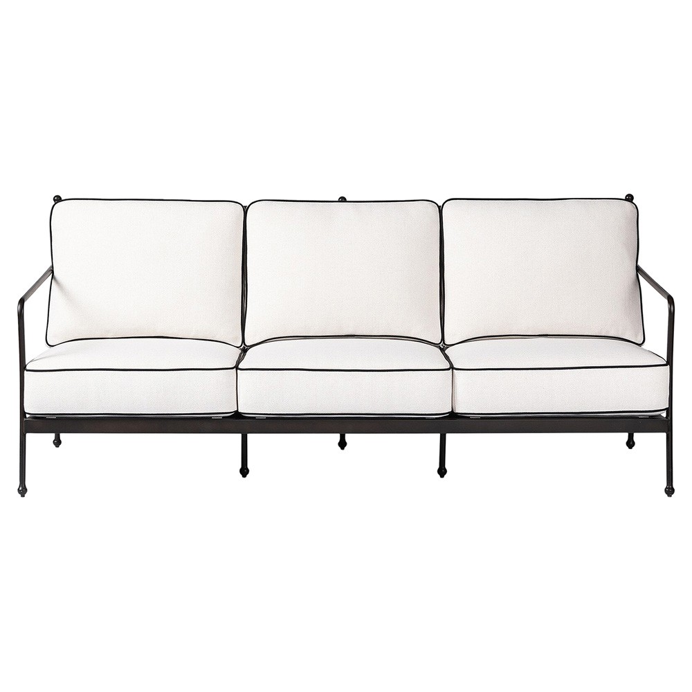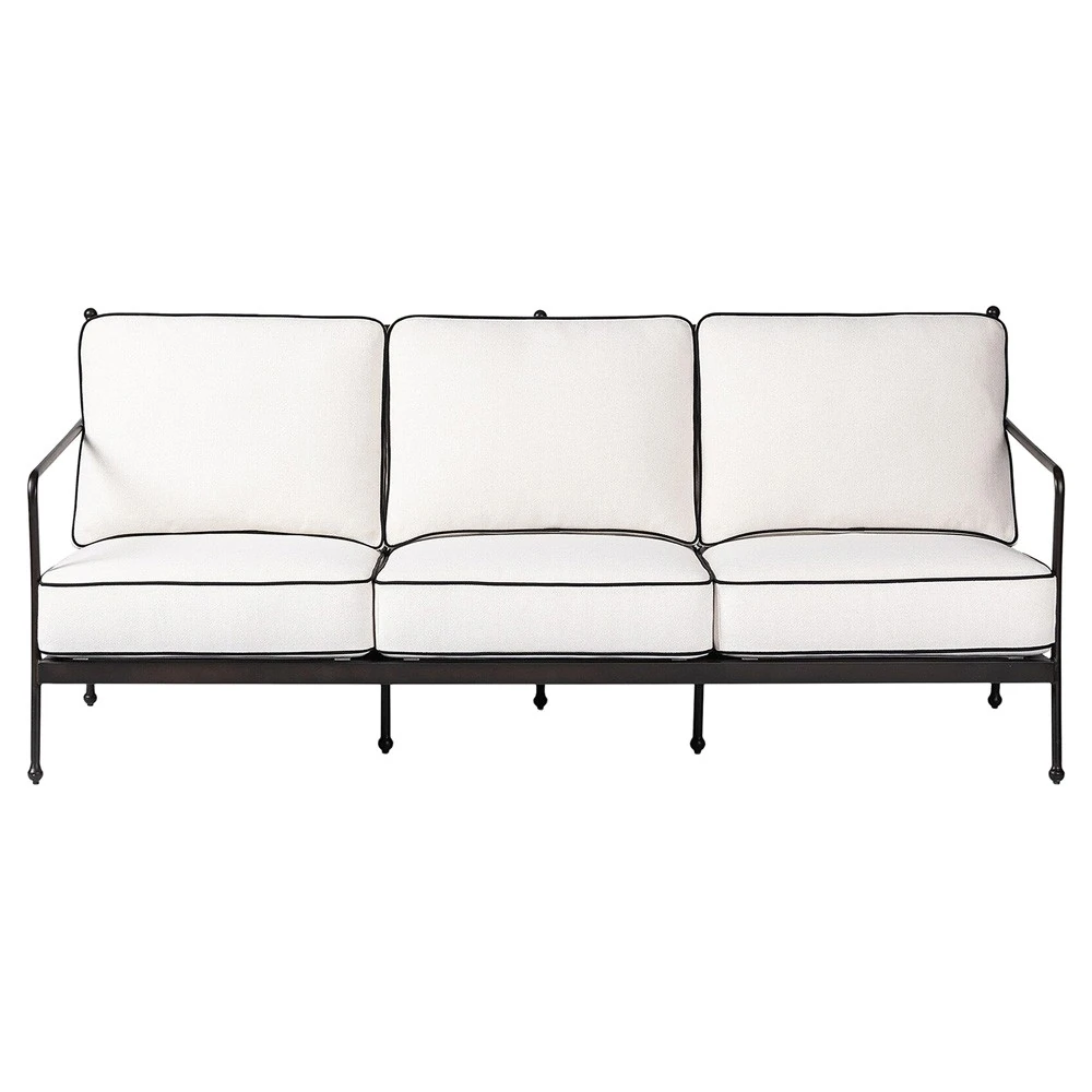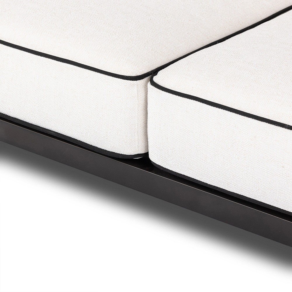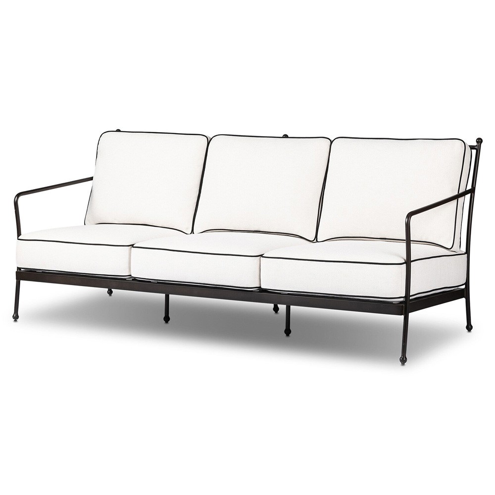 Gretchen French Country White Upholstered Black Welt Aluminum Outdoor Sofa - 76"