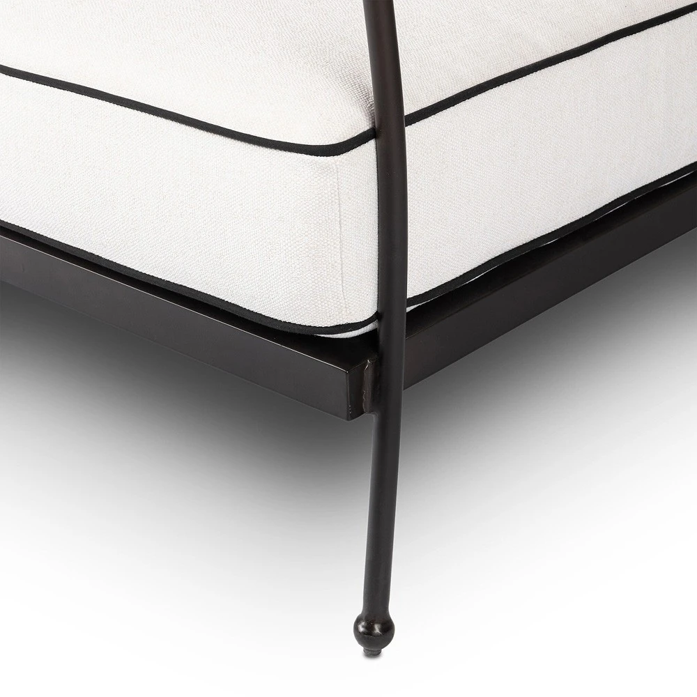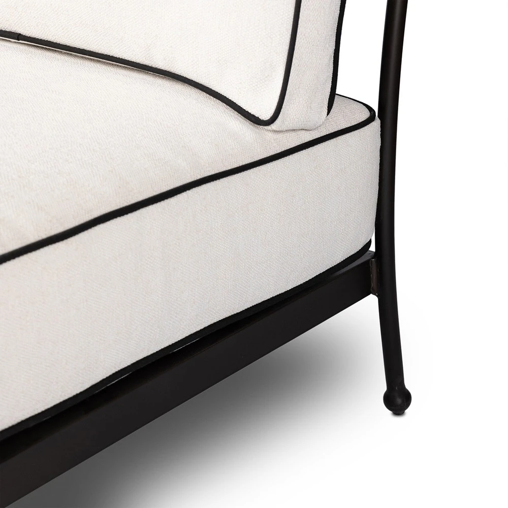 • Aurore Cream Cushion Black Welt Metal Outdoor Loveseat|Kathy Kuo Home