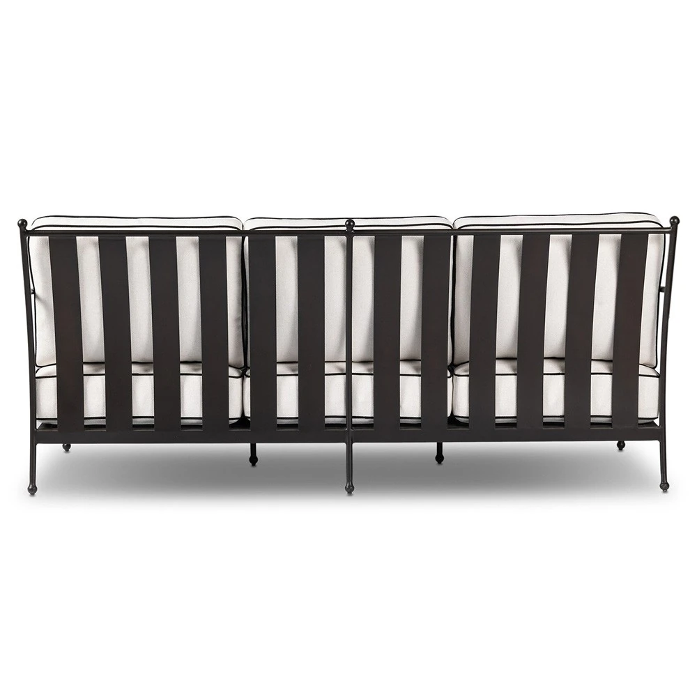 • Hermine French Country Beige Sunbrella Black Aluminum Outdoor Sofa - 85"|Kathy Kuo Home