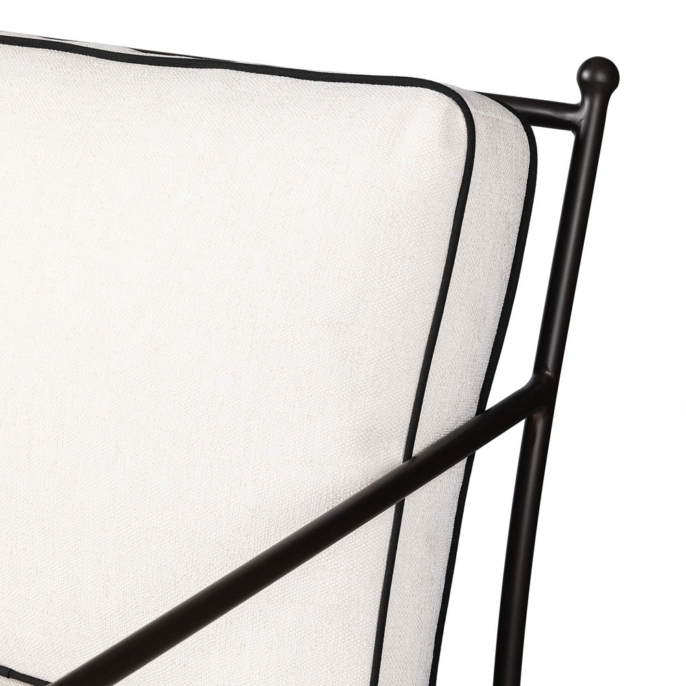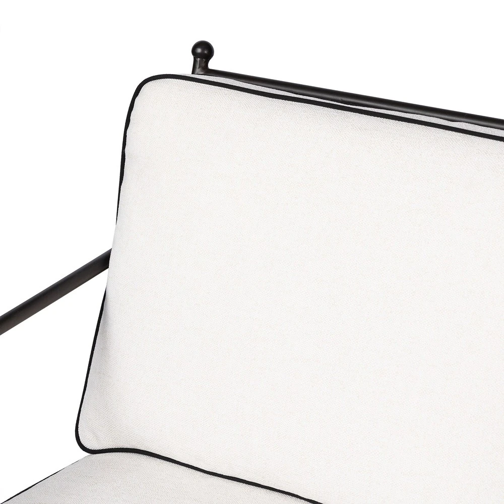 Gretchen French Country White Upholstered Black Welt Aluminum Outdoor Lounge Chair