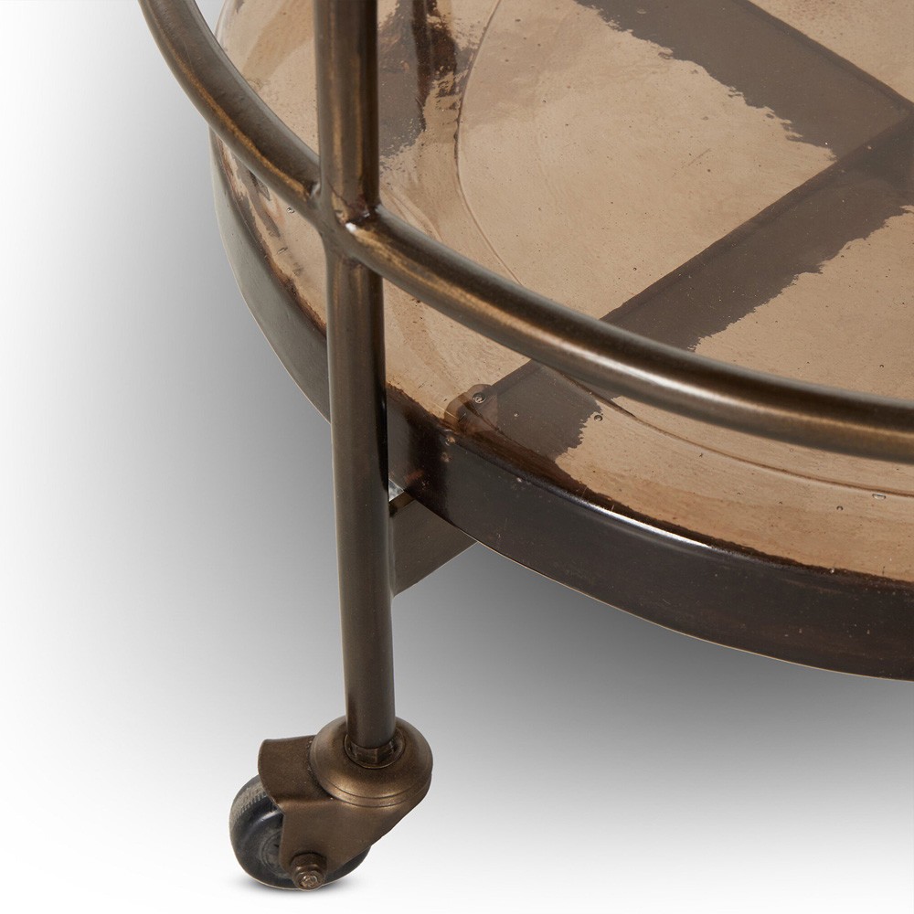 Pierce Modern Classic Smoked Cast Glass Black Iron Bar Cart