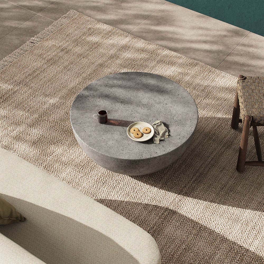• Maya Modern Classic Beige Concrete Round Outdoor Coffee Table|Kathy Kuo Home