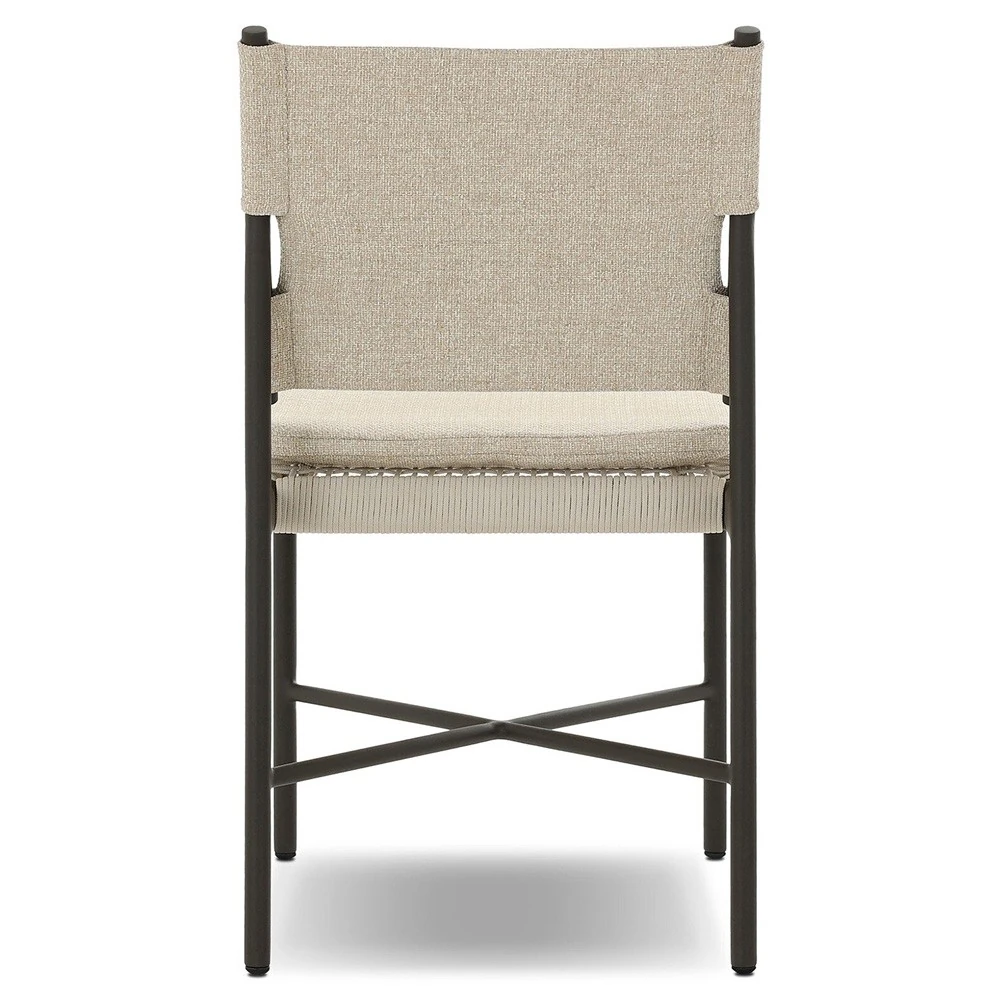 • Jace Industrial Grey Performance Sling Outdoor Dining Arm Chair|Kathy Kuo Home