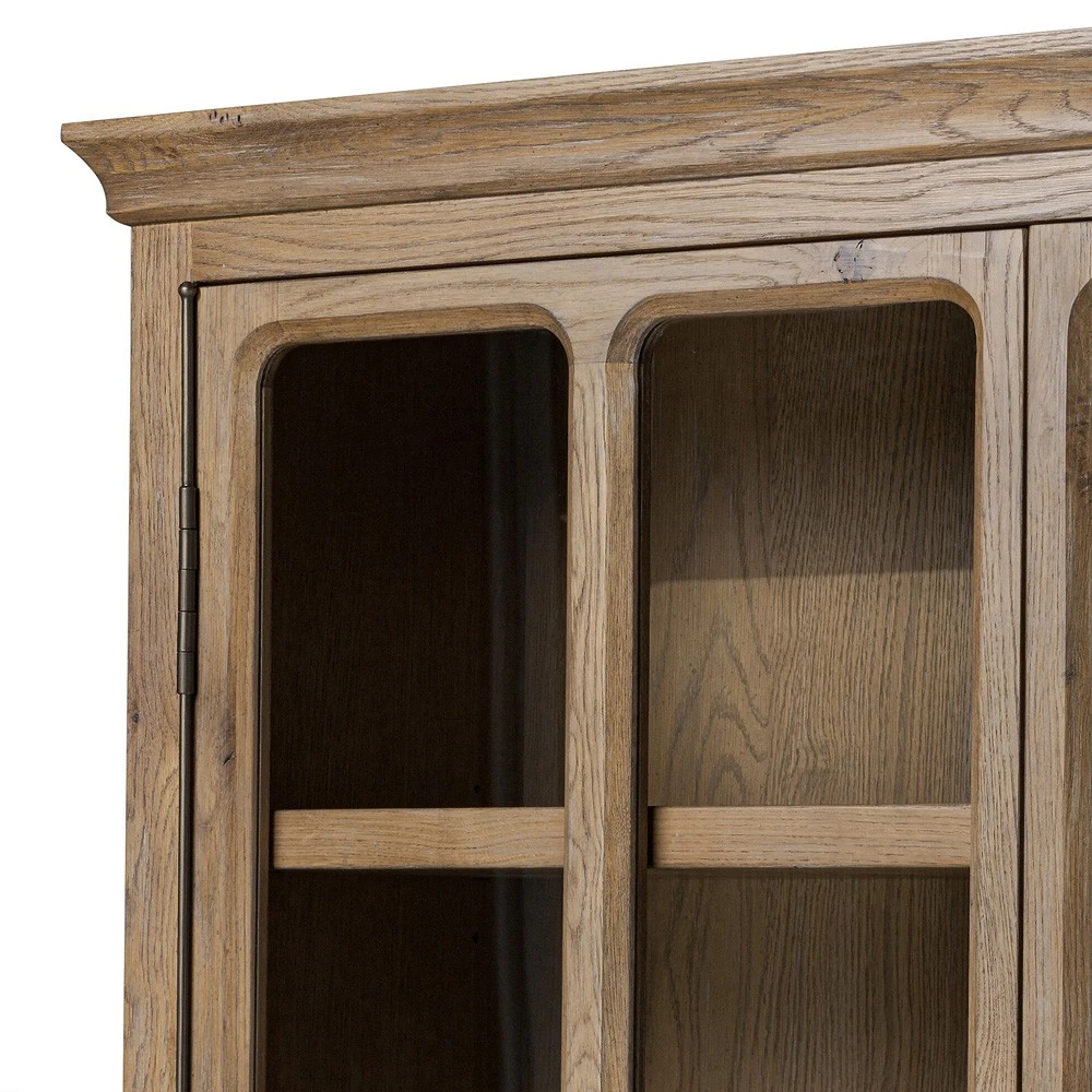 Elsa Natural Wood Glass Door Woven Rattan Drawer Arched China Cabinet