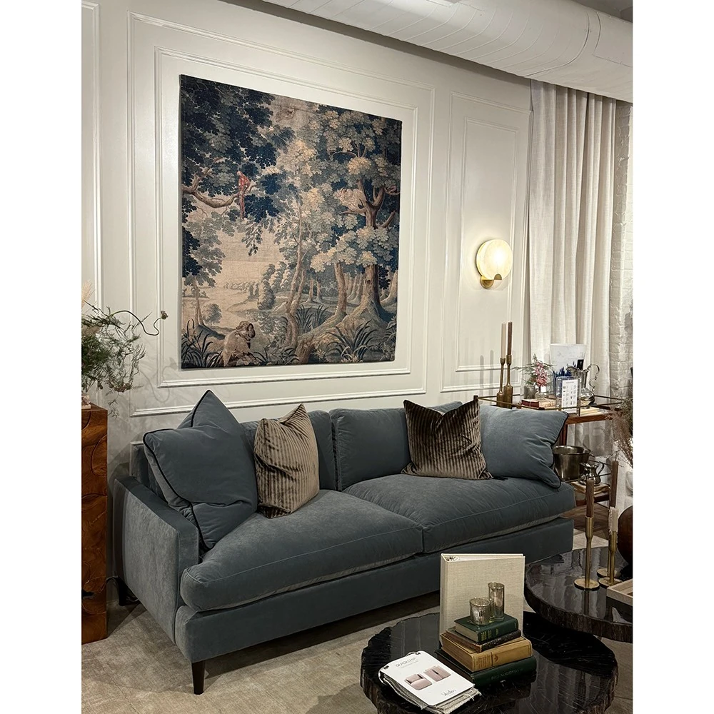• Features handcrafted detailing that echoes antique tapestries, with a microfiber interior for added structure and durability