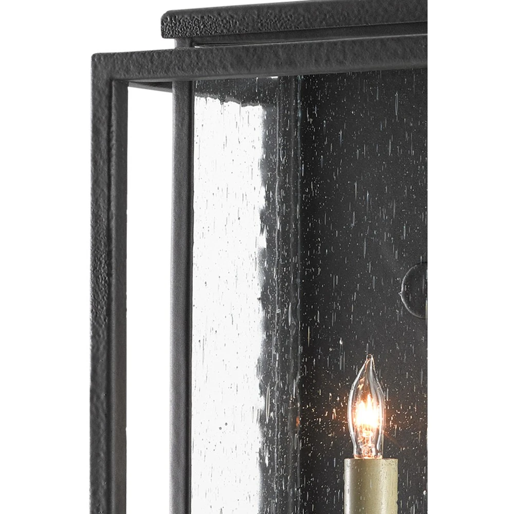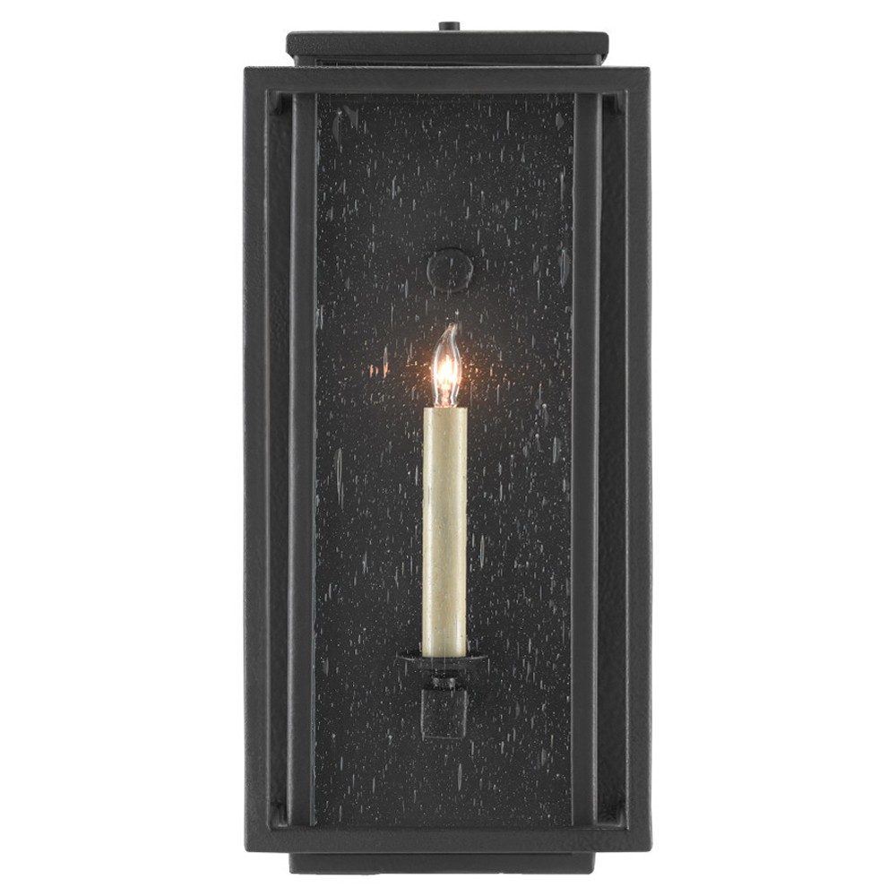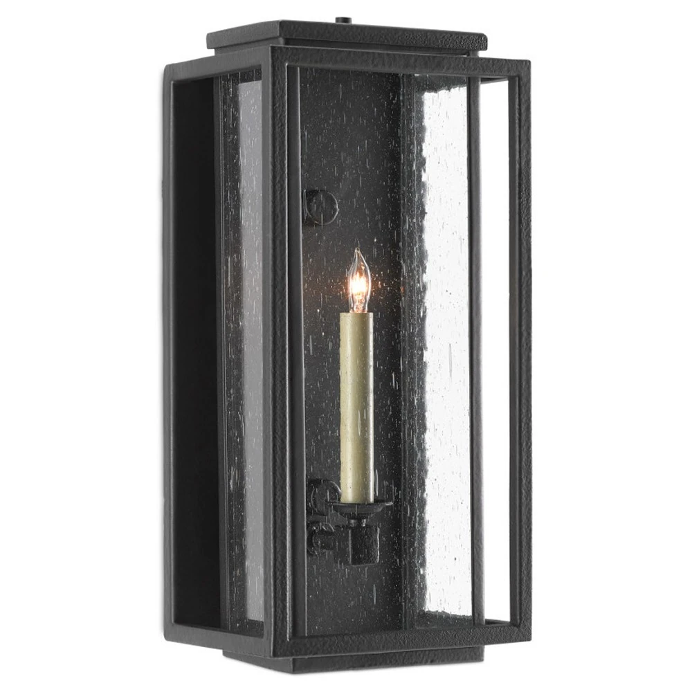 Windra Updated Traditional Seeded Glass Black Iron Outdoor Wall Sconce - Small