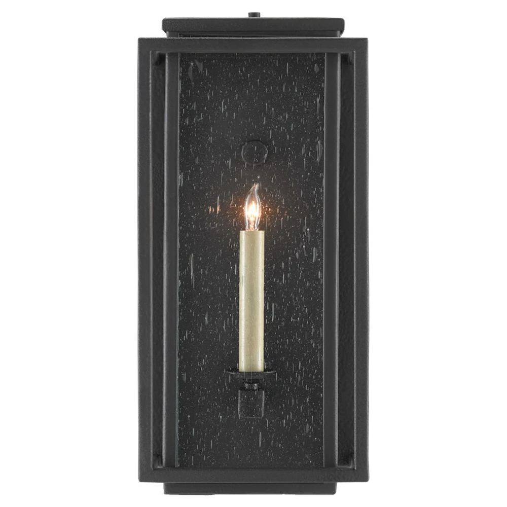 Tally Modern Classic Black Iron Glass Rectangular Outdoor Wall Sconce - Small