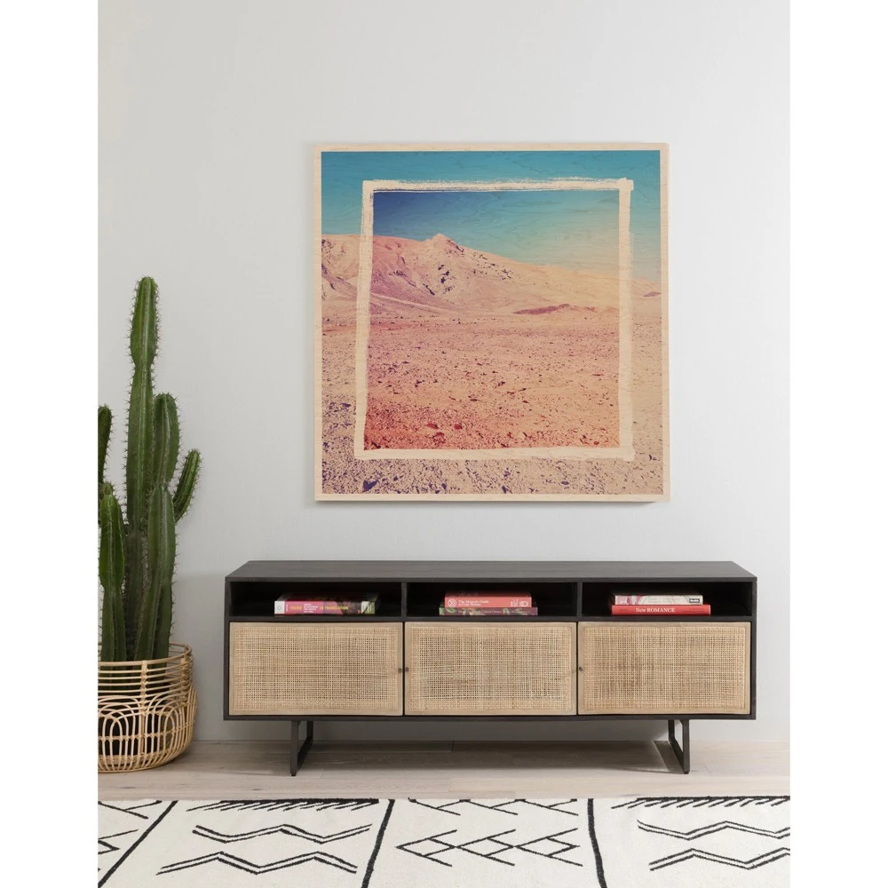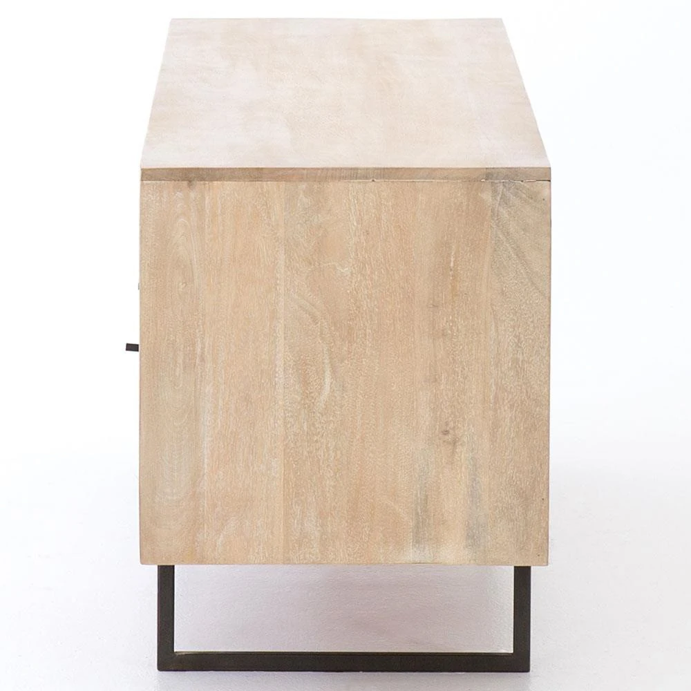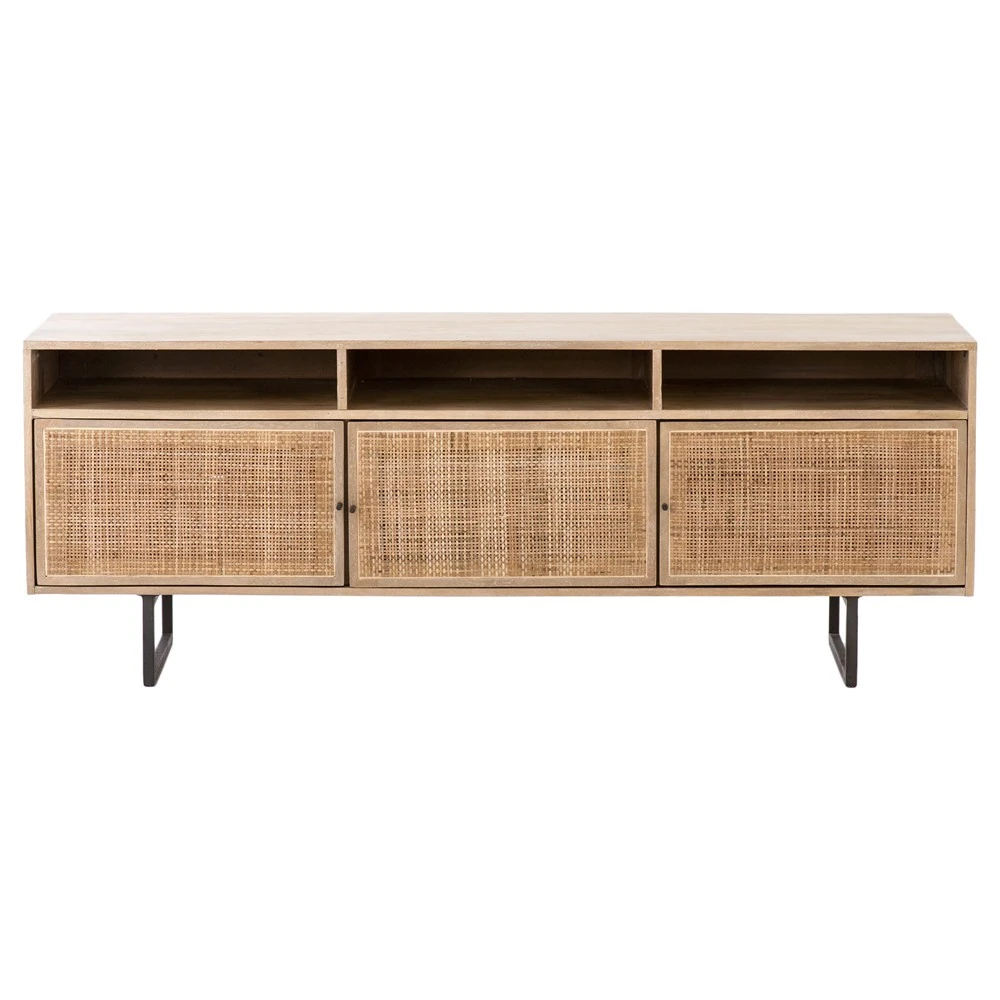 Emilie Mid Century Light Brown Mango Wood Woven Cane Iron Base Media Console - 65"W Overstock