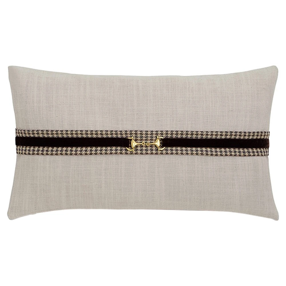 Alba Updated Traditional Gold Buckle Beige Decorative Lumbar Pillow - 15x26