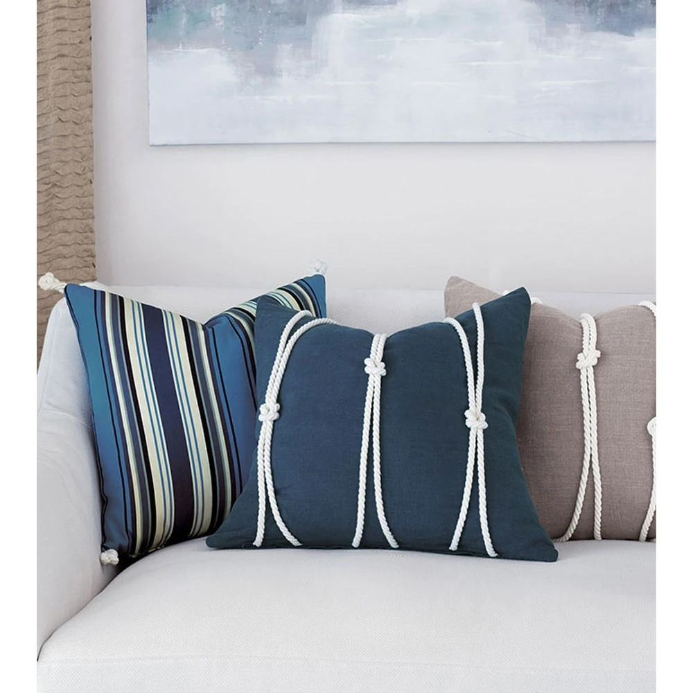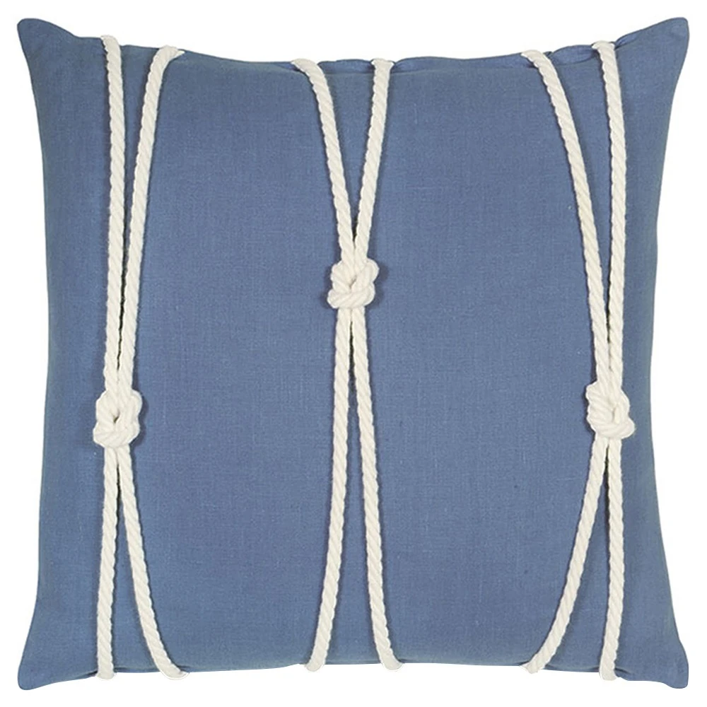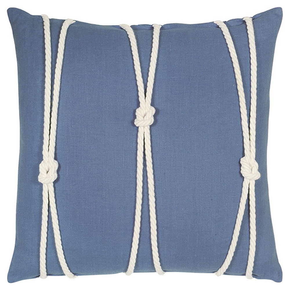 Maelle Coastal Beach Blue Linen Knot Decorative Throw Pillow - 20x20