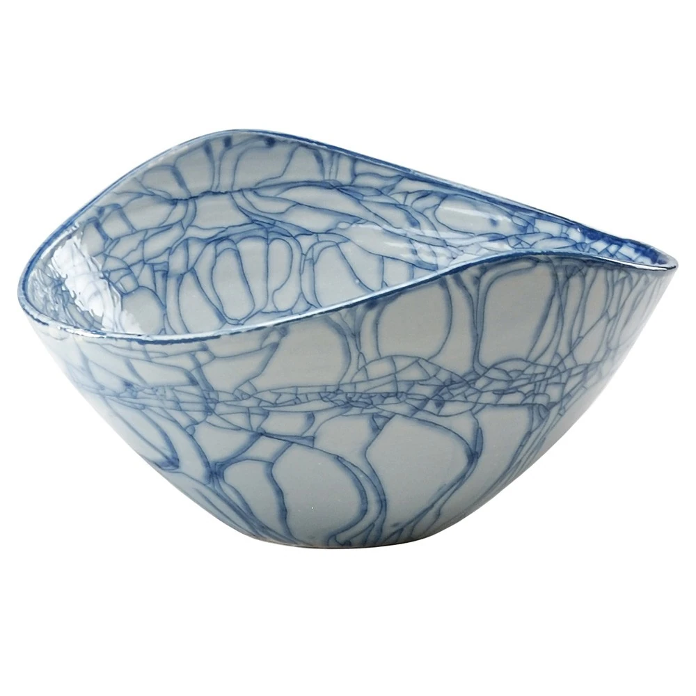 Siena Modern Blue Swirl Hand Glazed Porcelain Bowl