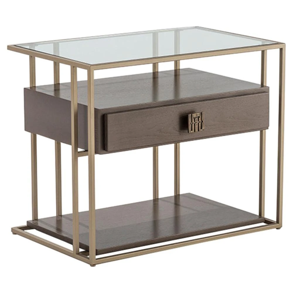 Adriana Hoyos Bolero Industrial Loft Glass Top Dark Brown Wood Bronze Nightstand Overstock