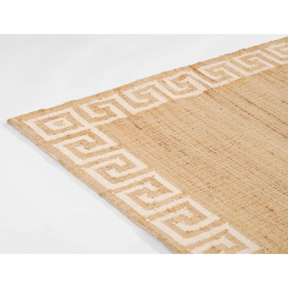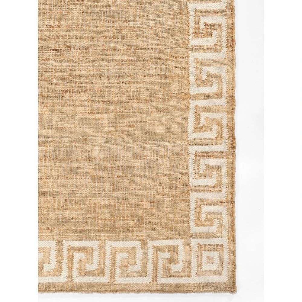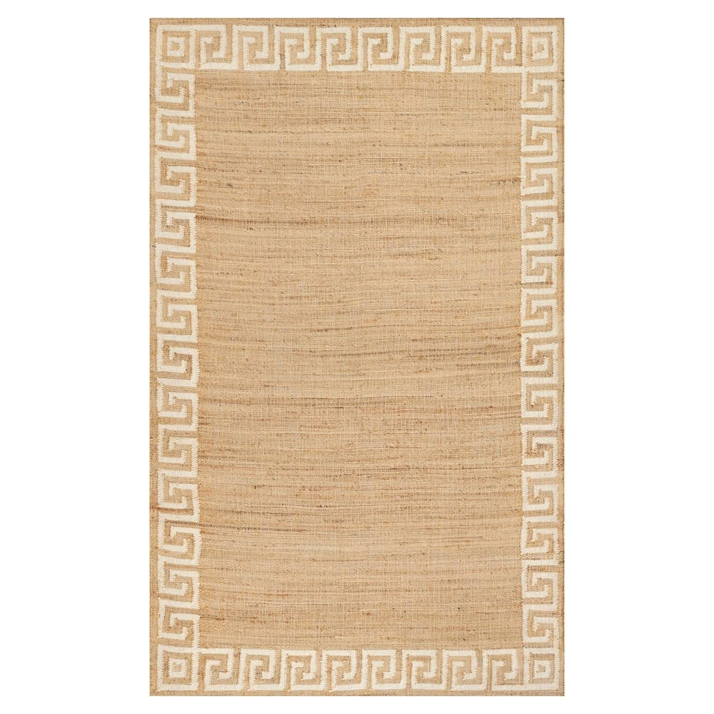 Lior Coastal Beach Taupe Wool Bordered Patterned Rug - 5'x8'