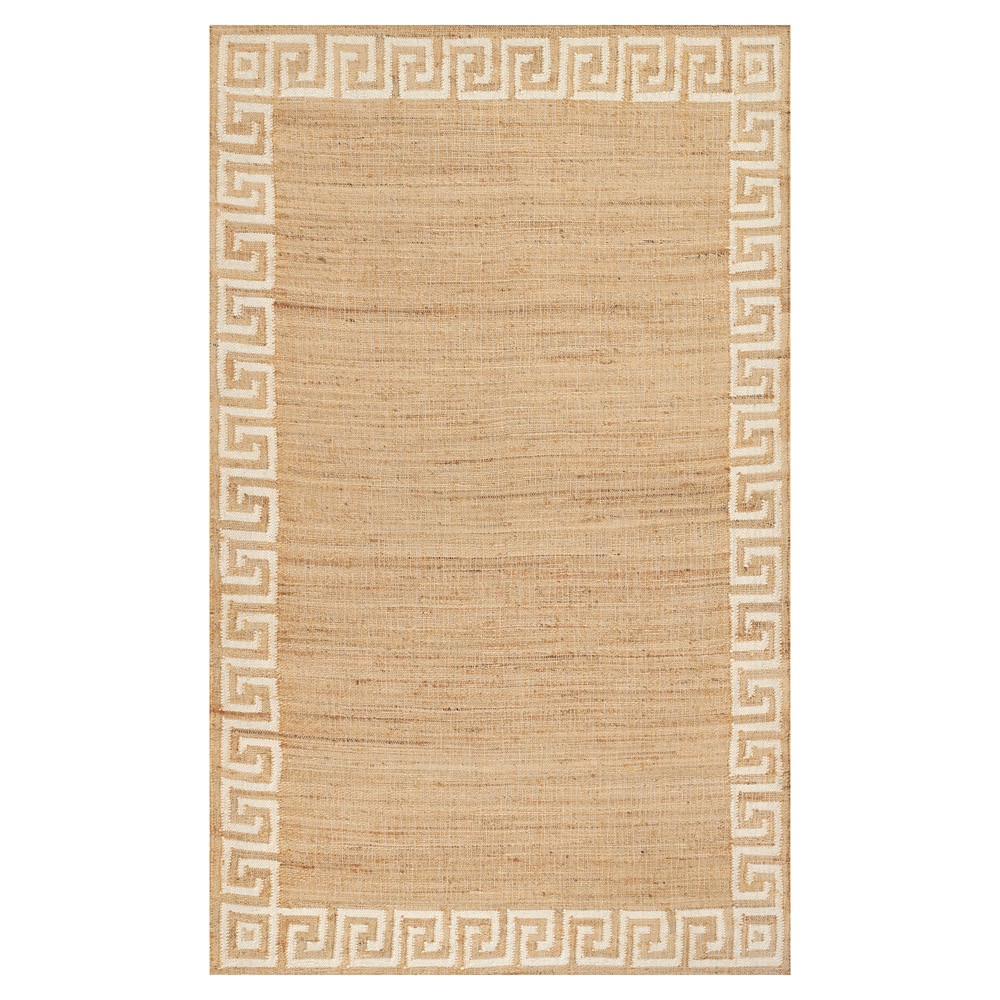 • Lior Coastal Beach Taupe Wool Bordered Patterned Rug - 5'x8'|Kathy Kuo Home