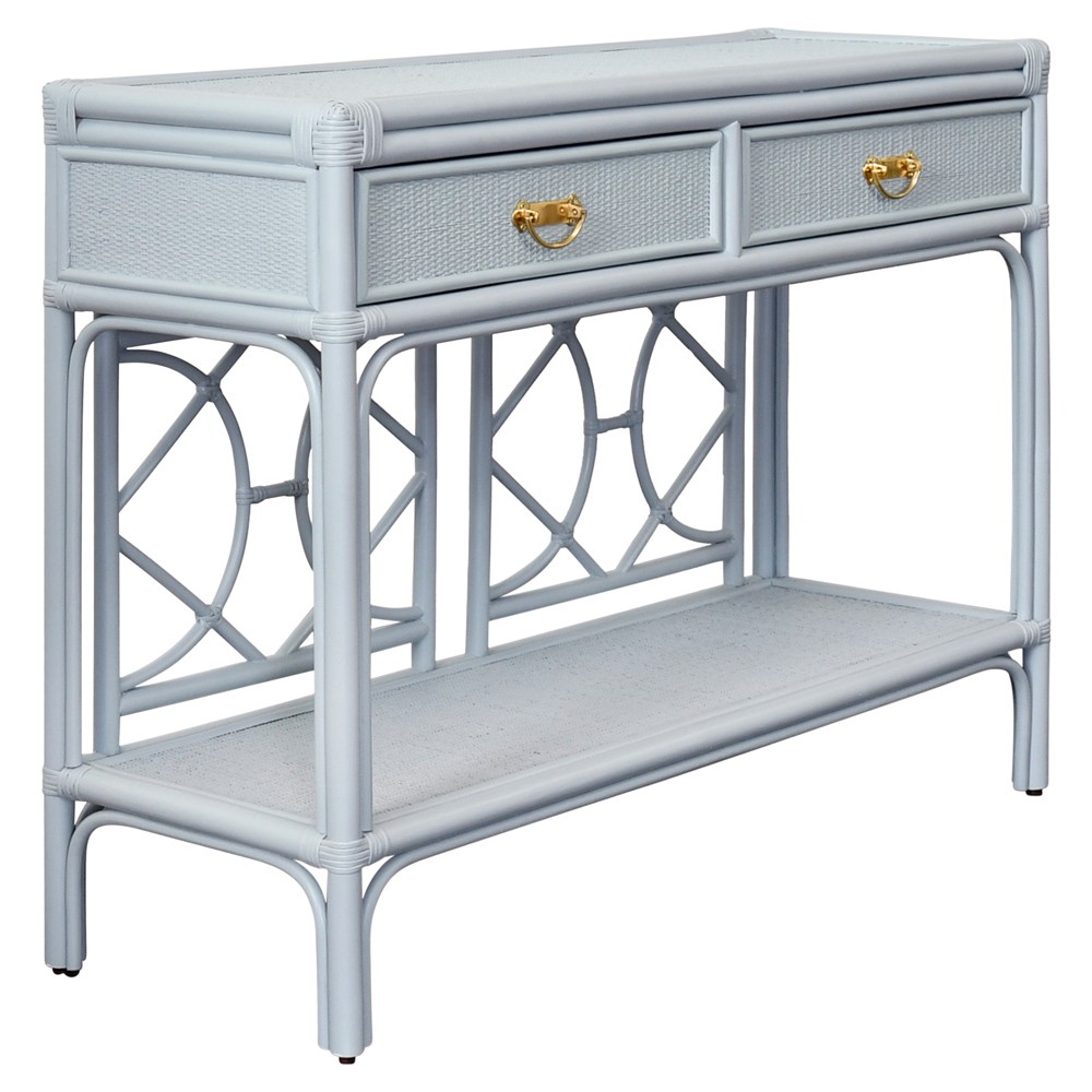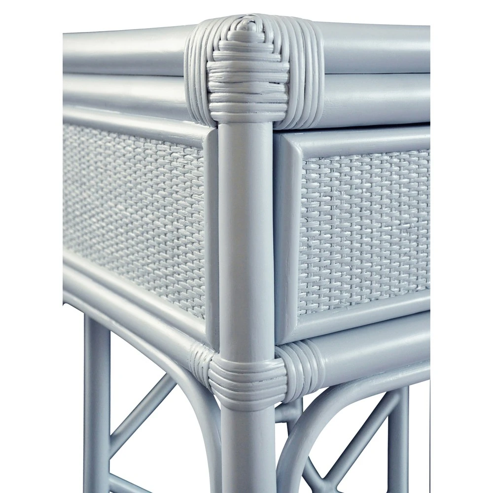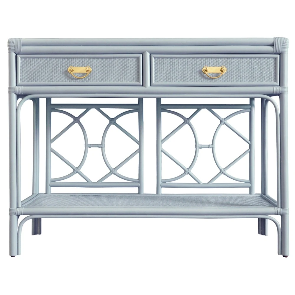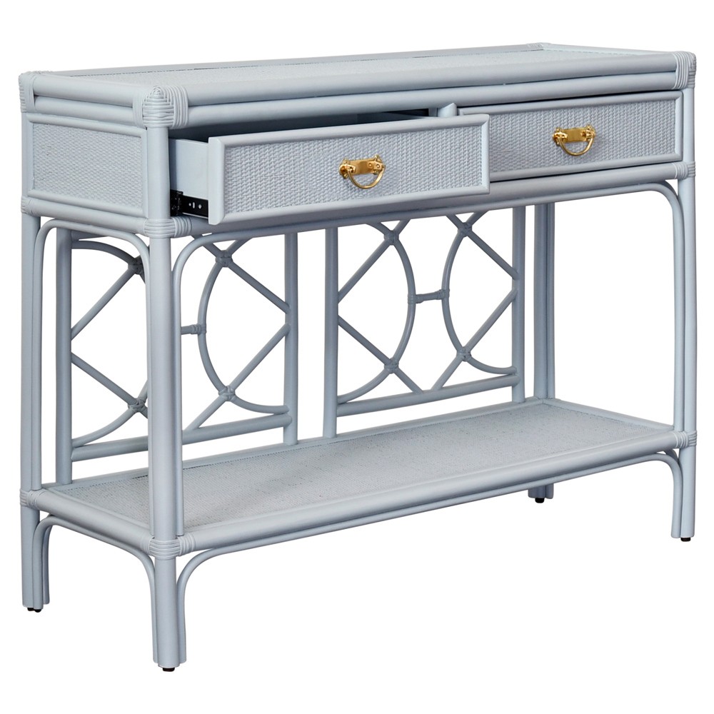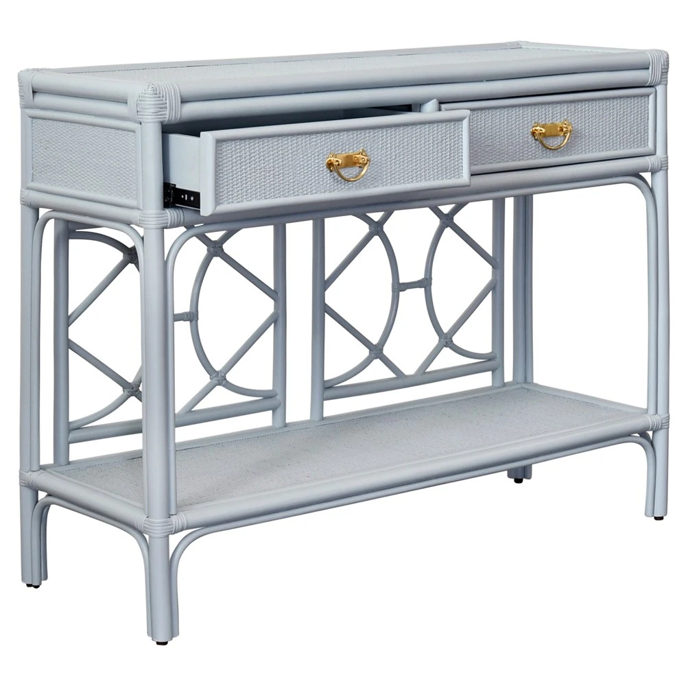 Worlds Away Gideon Coastal Beach Light Blue Rattan Console Table
