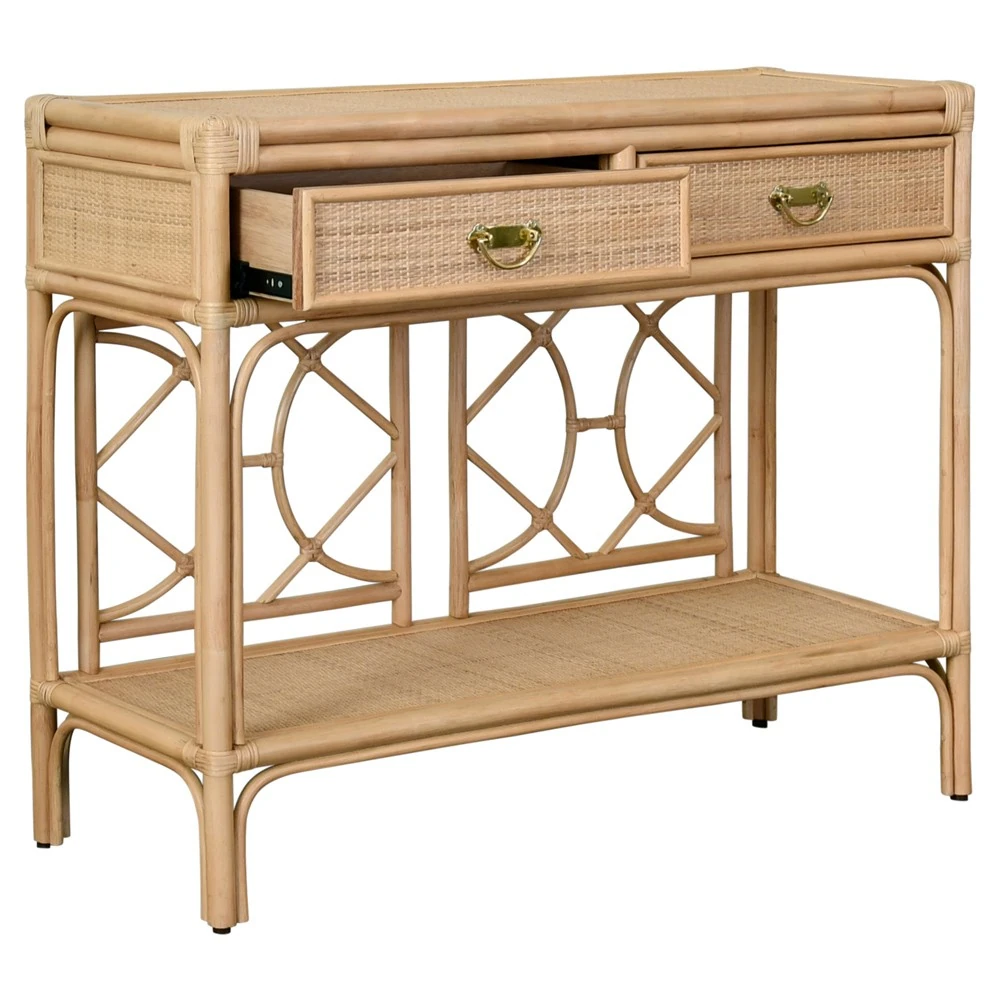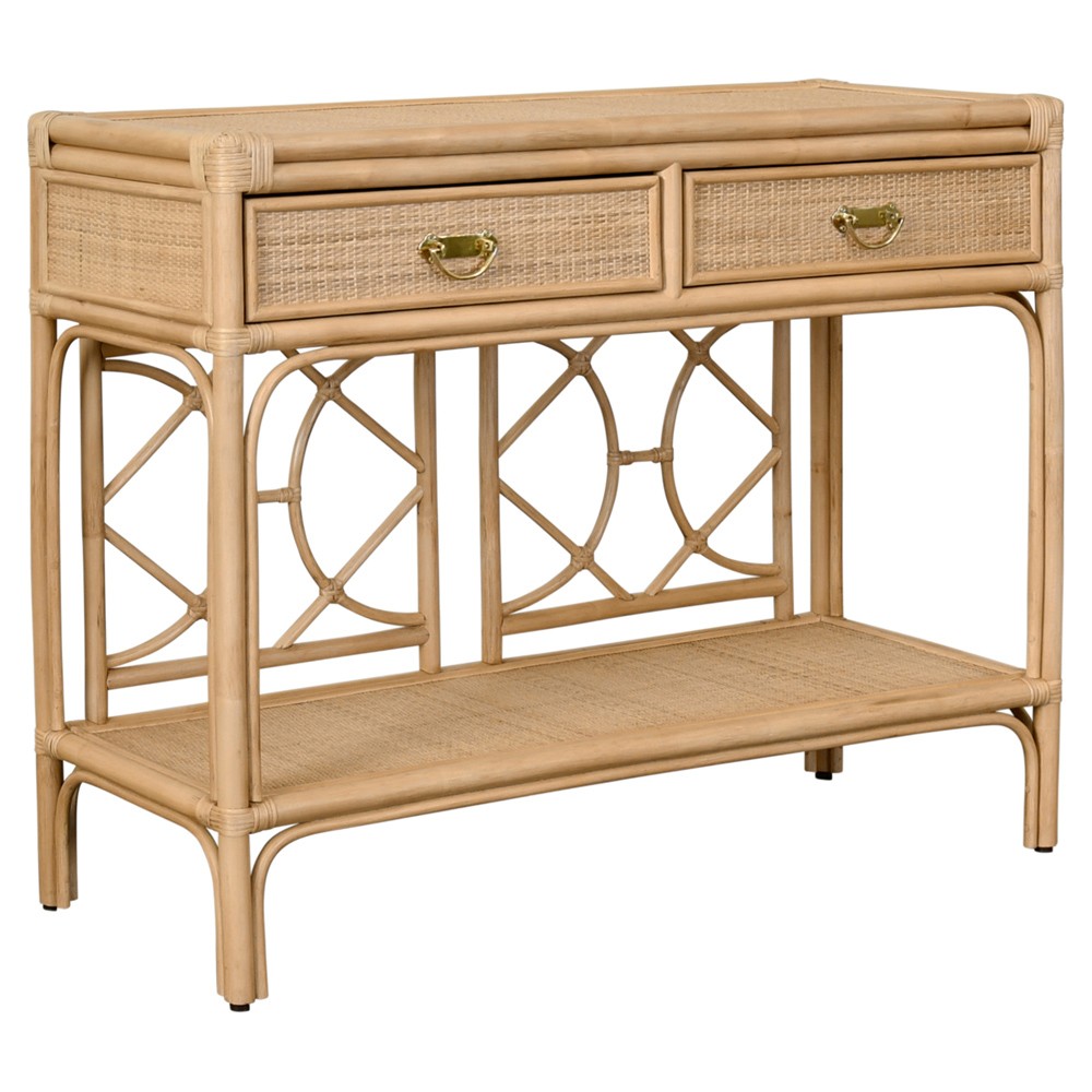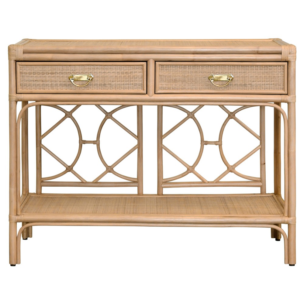 Worlds Away Gideon Coastal Beach Natural Rattan Console Table