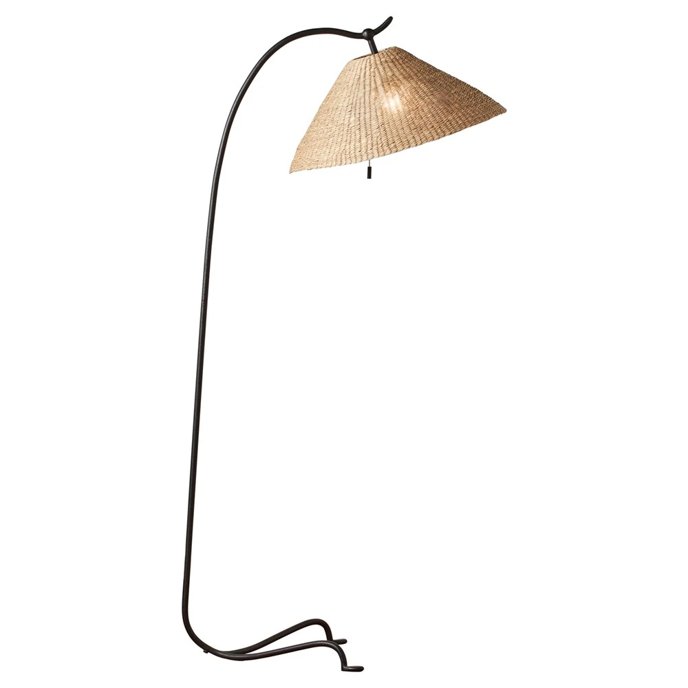 Camilla Coastal Seagrass Shade Black Iron Arched Floor Lamp