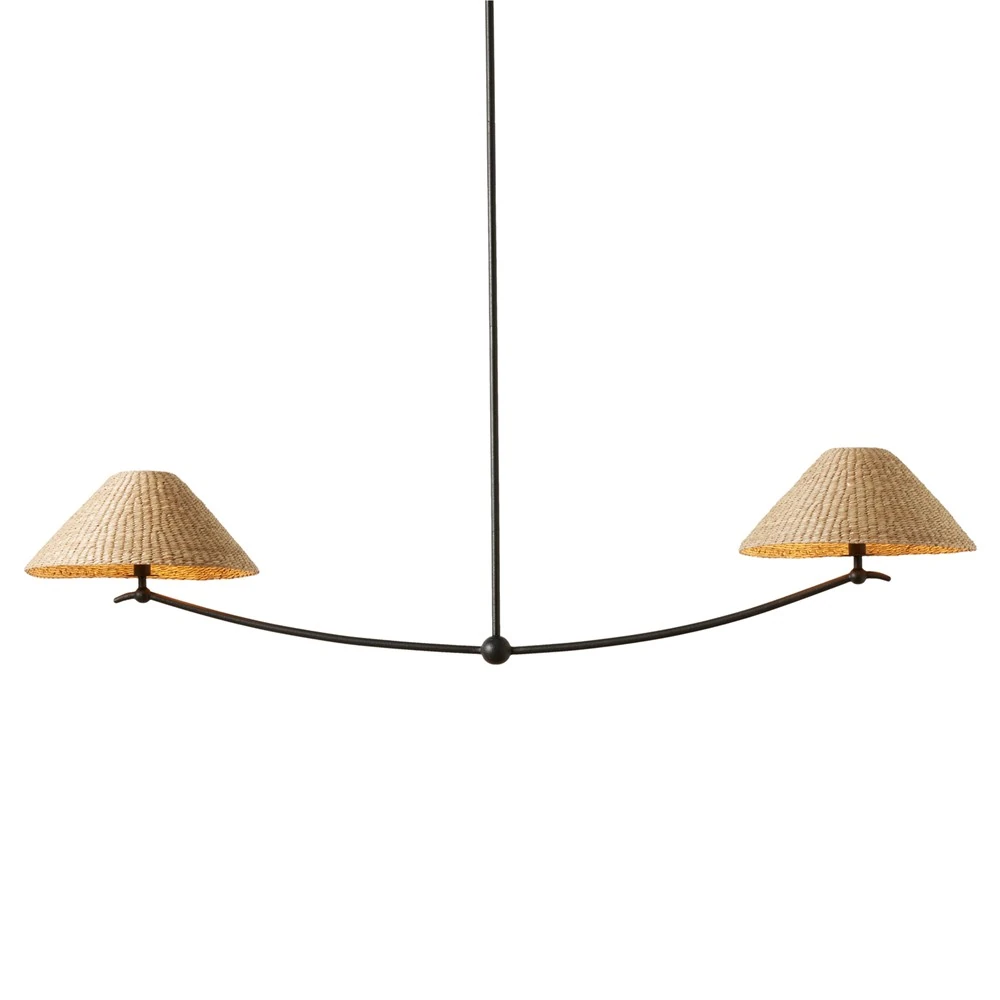 Camilla Coastal Seagrass Shade Black Iron Linear Pendant