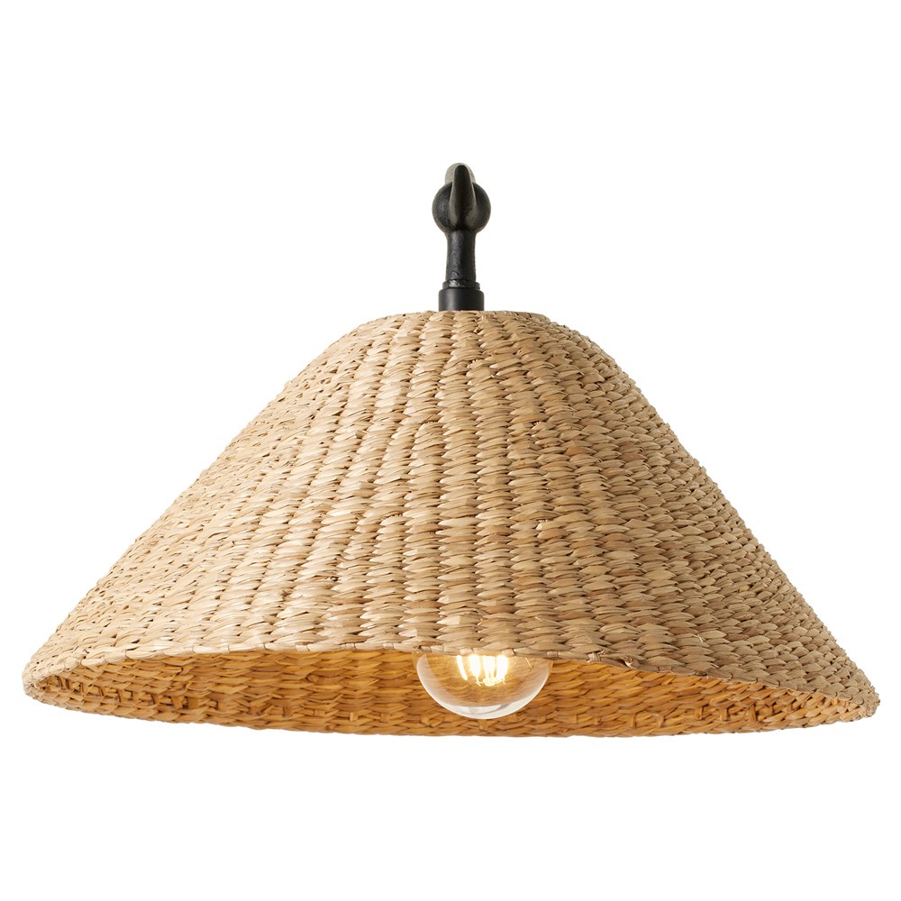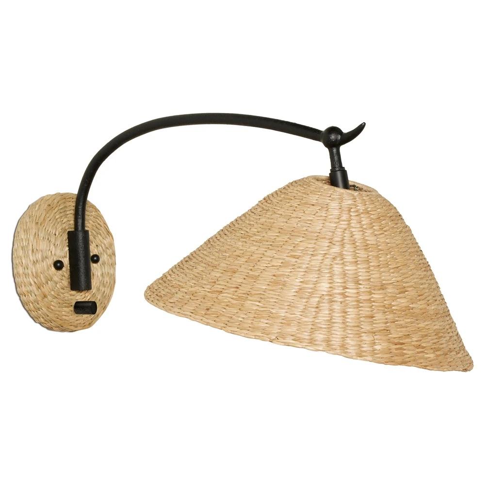 Camilla Coastal Seagrass Shade Black Iron Swing Arm Sconce