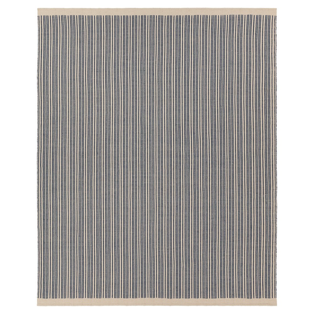 Morien Updated Traditional Dark Blue Striped Patterned Indoor Outdoor Rug - 6'x9'