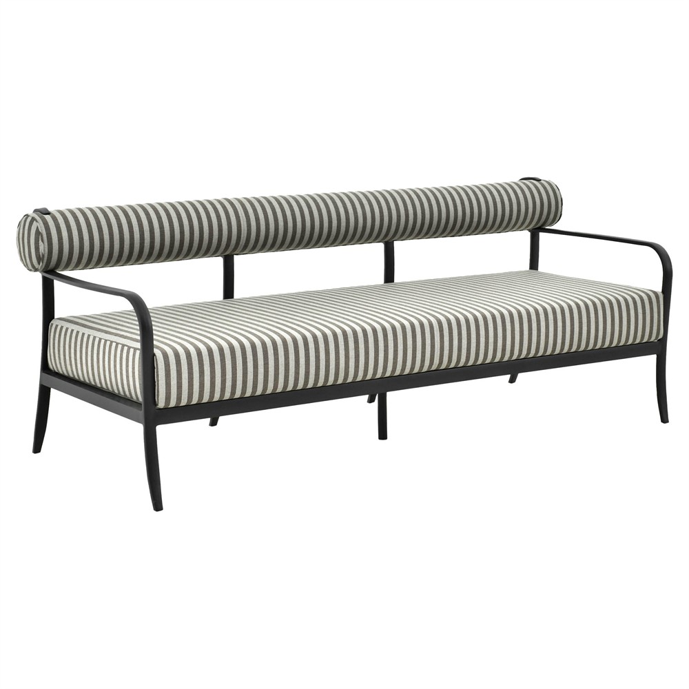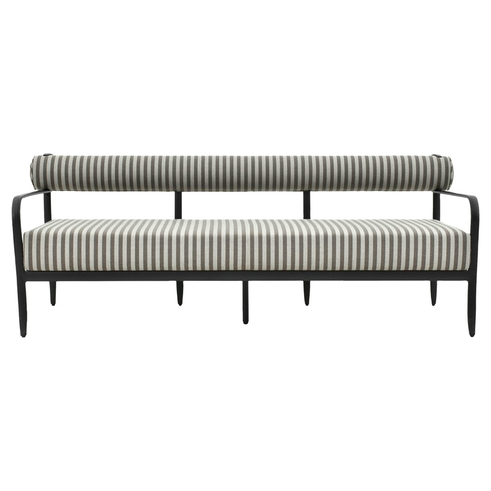 Madelle Modern Classic Grey Striped Sunbrella Black Aluminum Outdoor Sofa - 81"