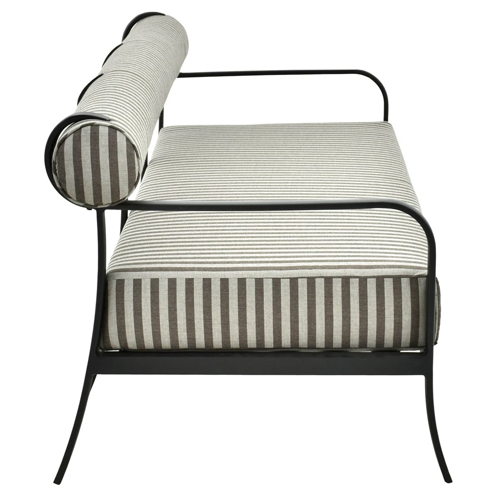 • Aurore White Black Stripe Cabana Cushion Metal Outdoor Loveseat|Kathy Kuo Home