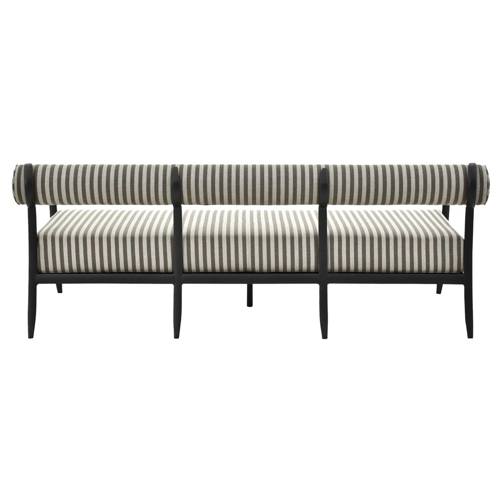 • Madelle Modern Classic Grey Striped Sunbrella Black Aluminum Outdoor Dining Bench|Kathy Kuo Home