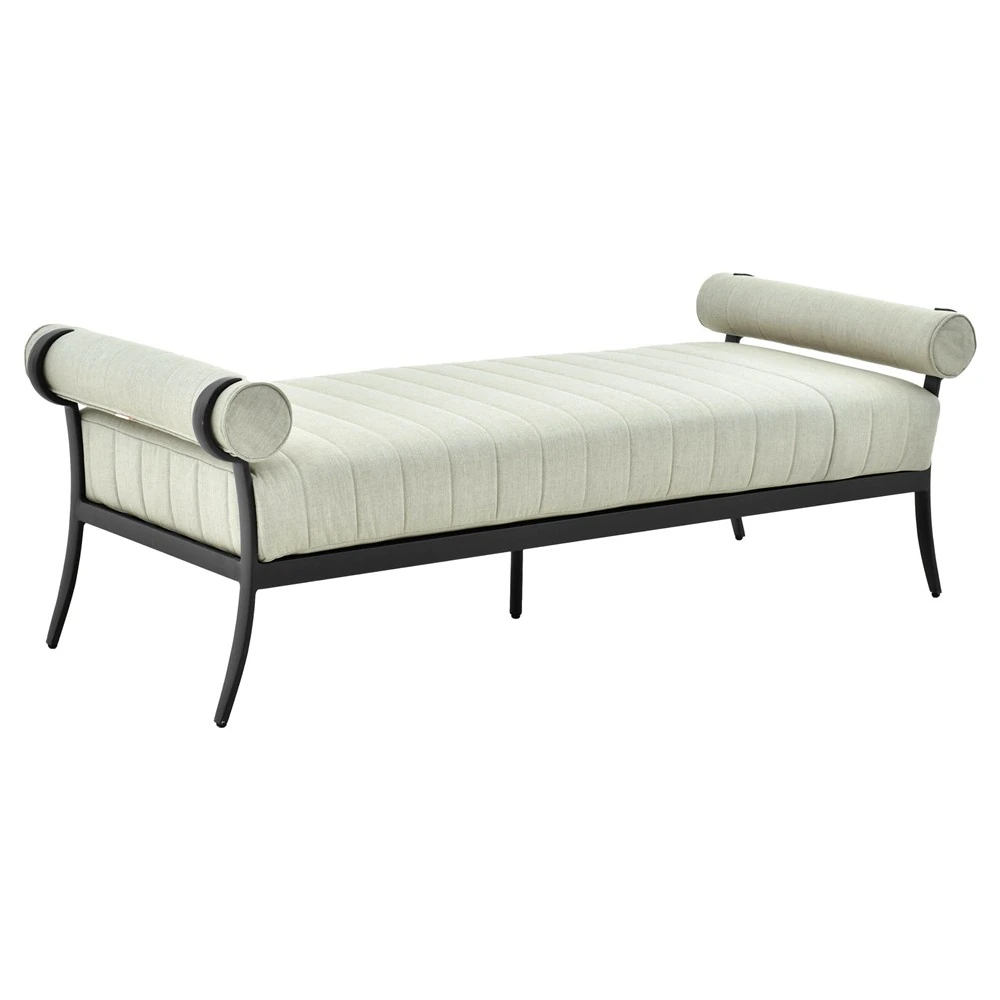 • Aurore French Beige Sunbrella Cushion Metal Outdoor Garden Bench|Kathy Kuo Home