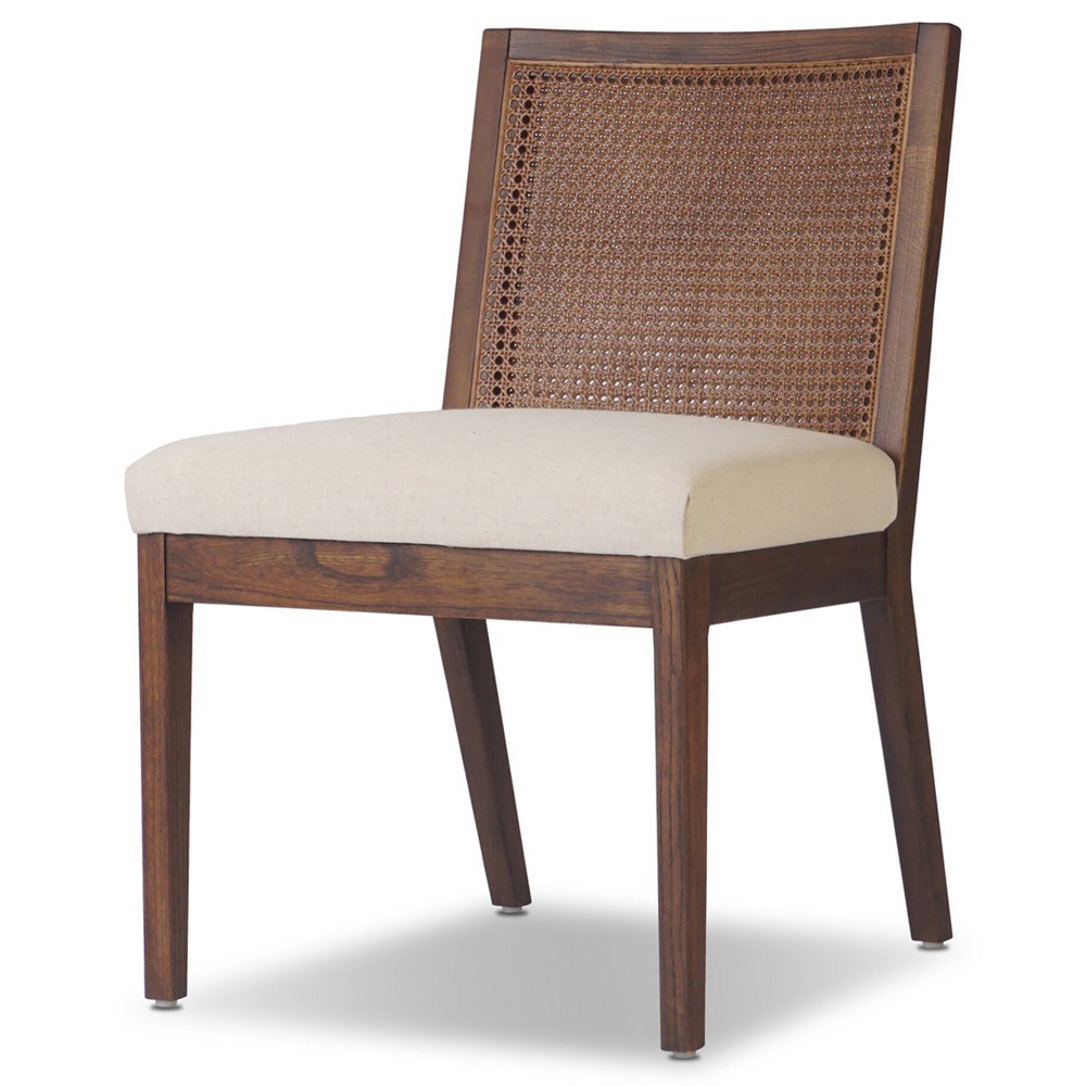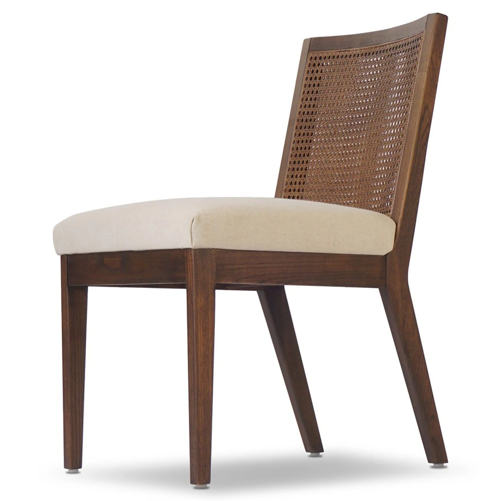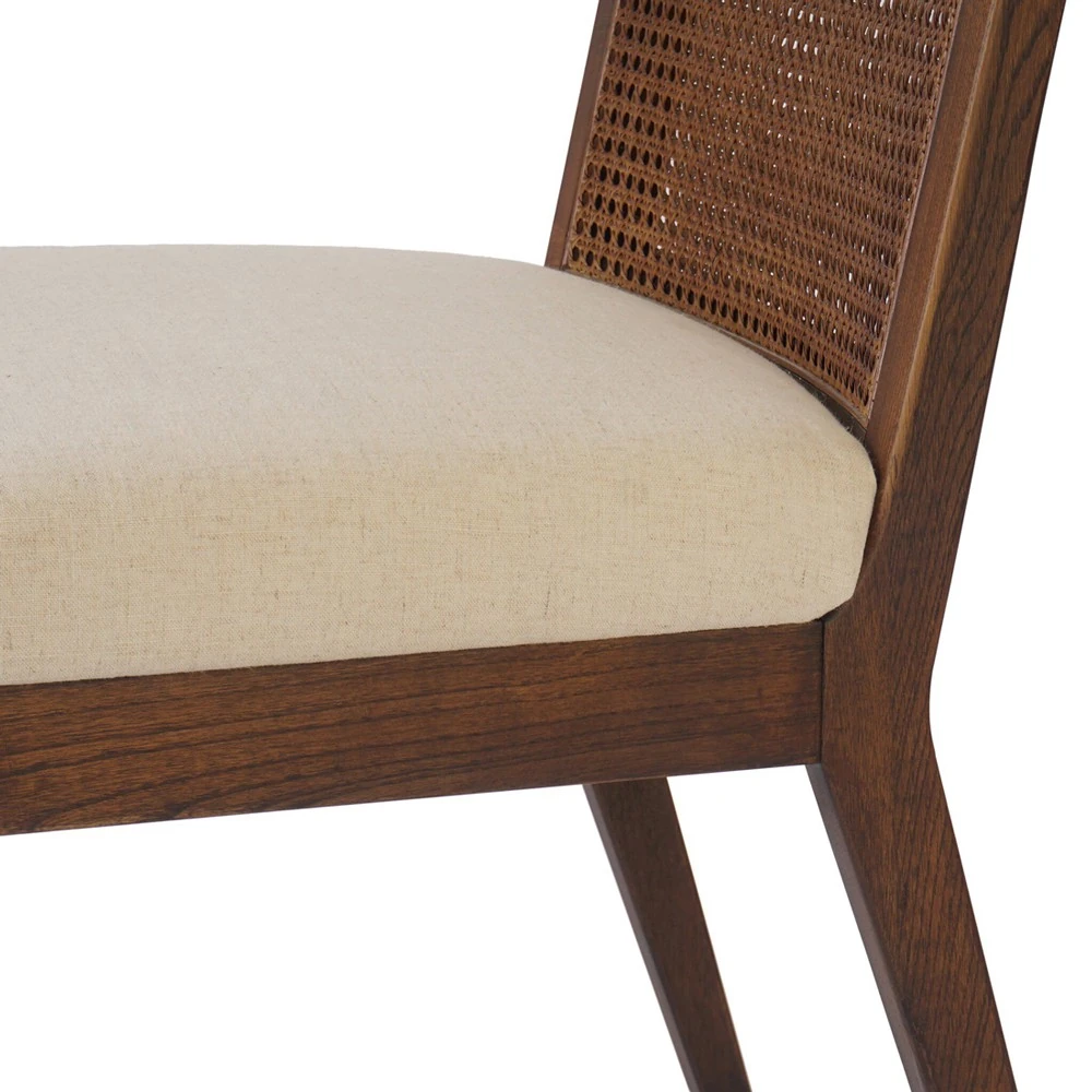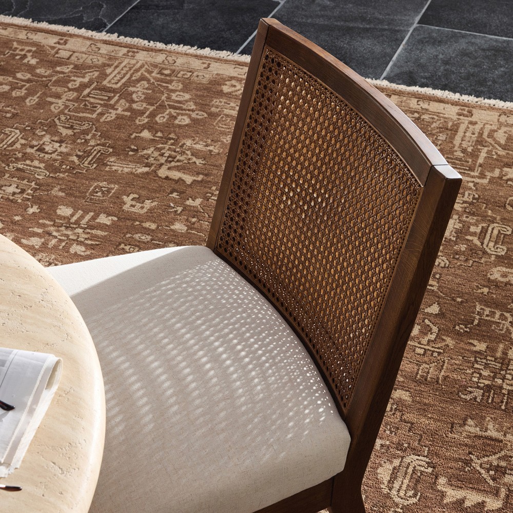 • Andy Modern Classic Ivory Performance Seat Brown Wood Dining Chair|Kathy Kuo Home