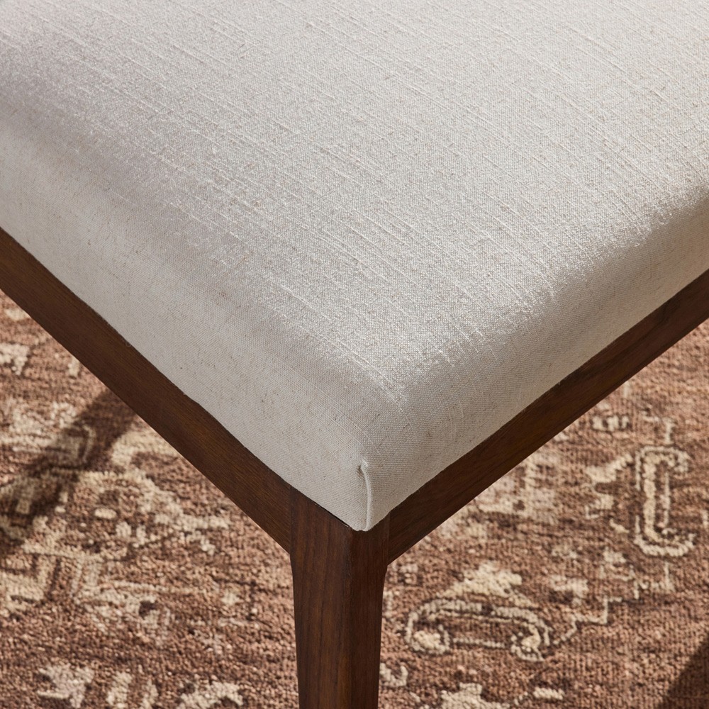 • Tobin Updated Traditional Off White Upholstered Brown Wood Dining Chair|Kathy Kuo Home