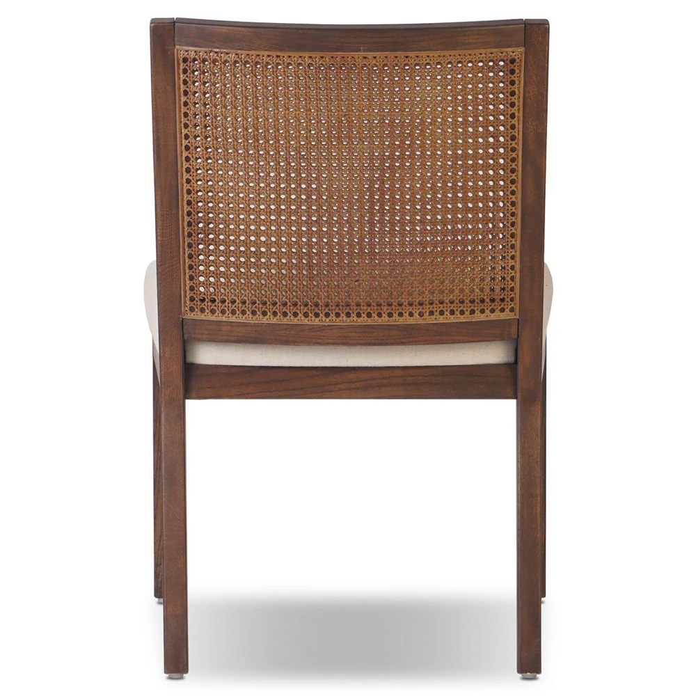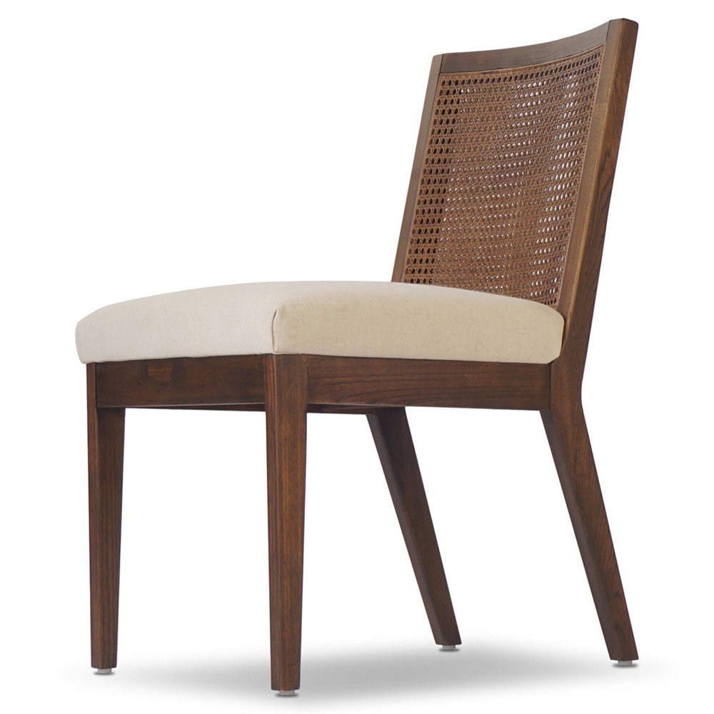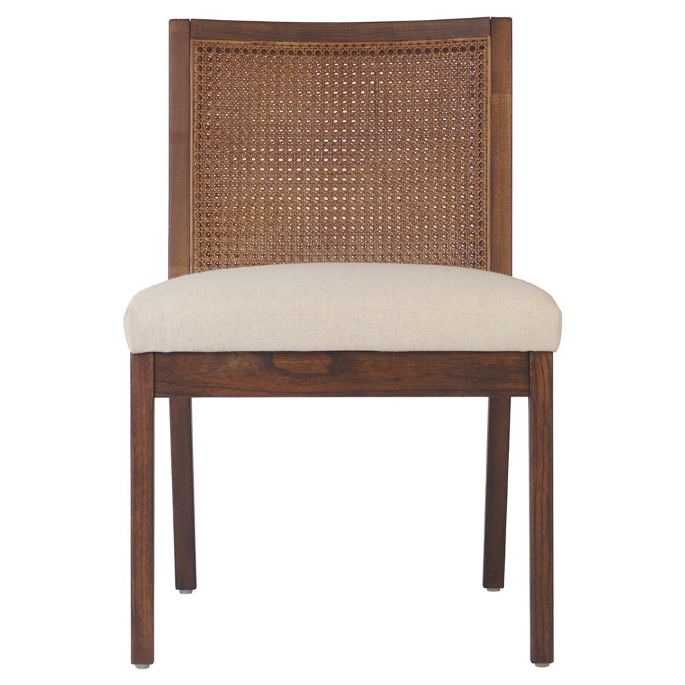 Annette Modern Classic Dark Brown Cane Wood Frame White Performance Dining Side Chair