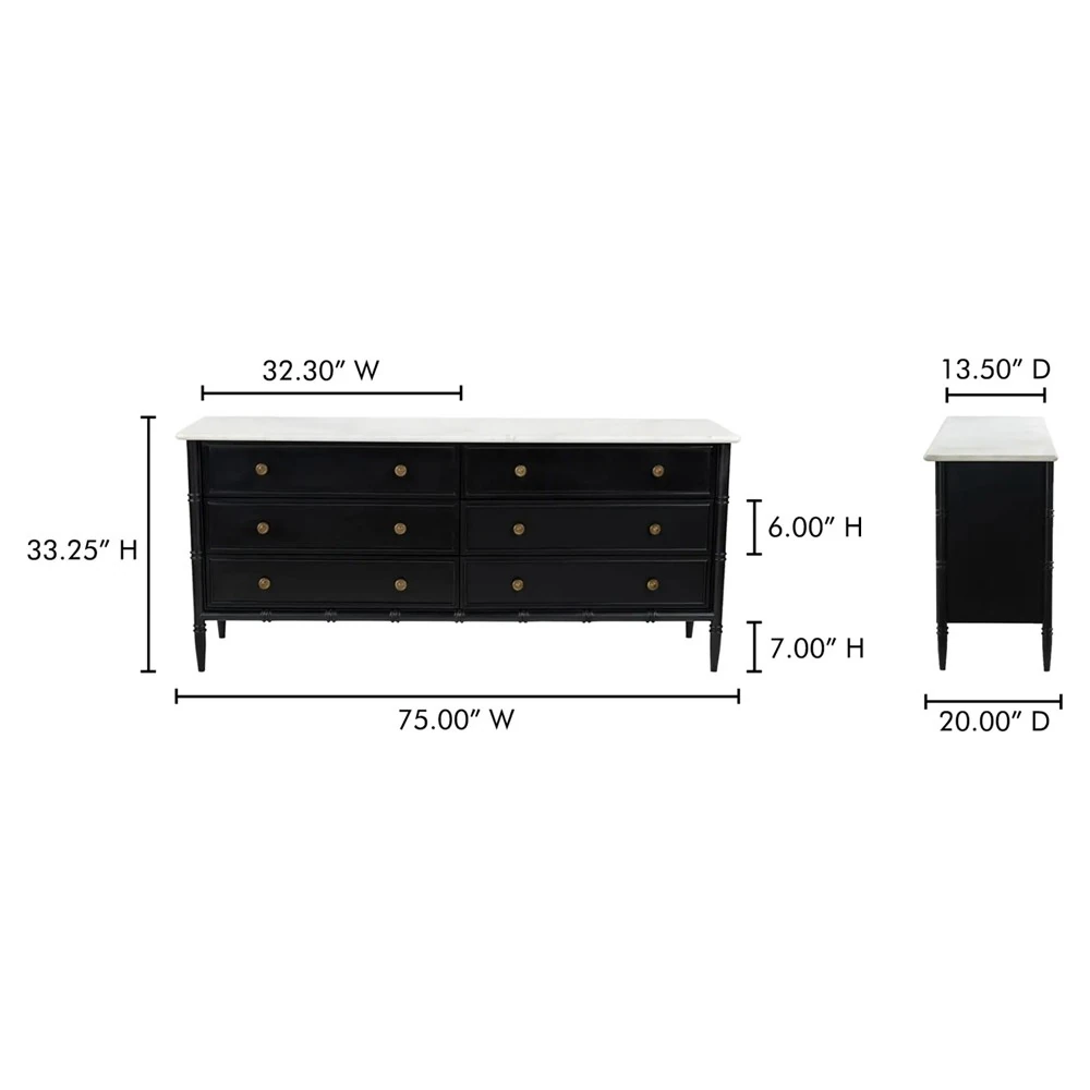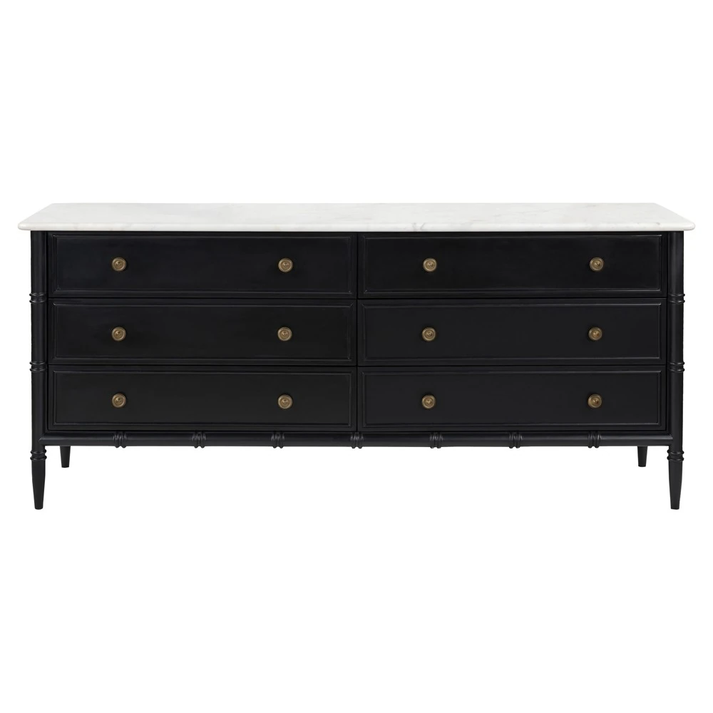 Poema Updated Traditional White Marble Black Wood Double Dresser