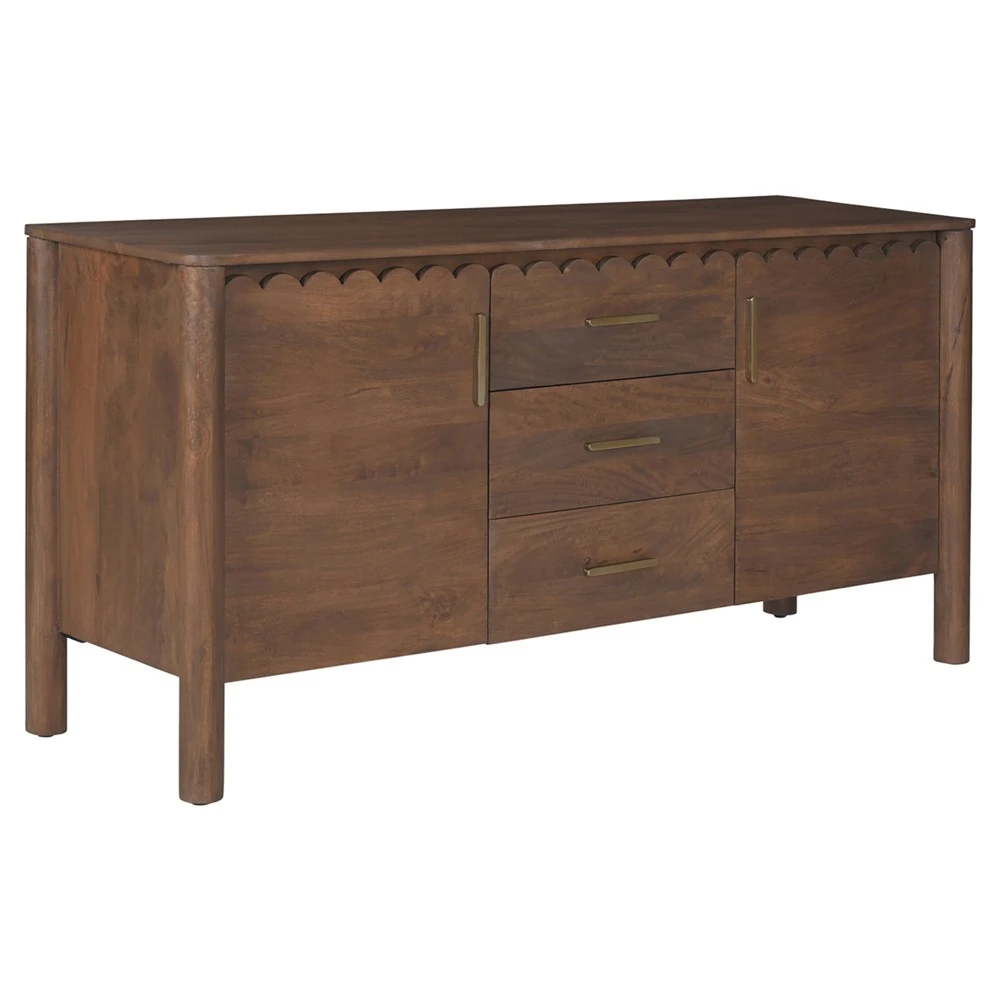 Bella Modern Classic Brown Mango Wood Scalloped Sideboard - 60"
