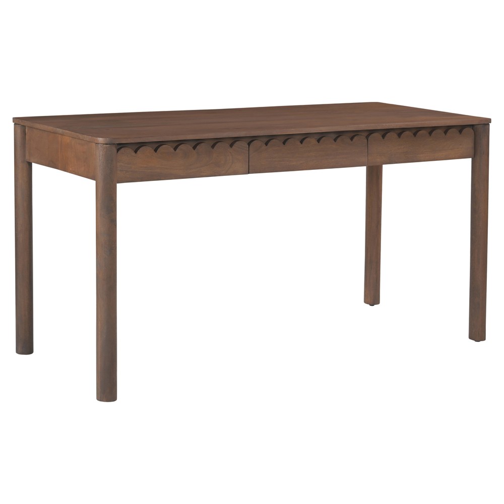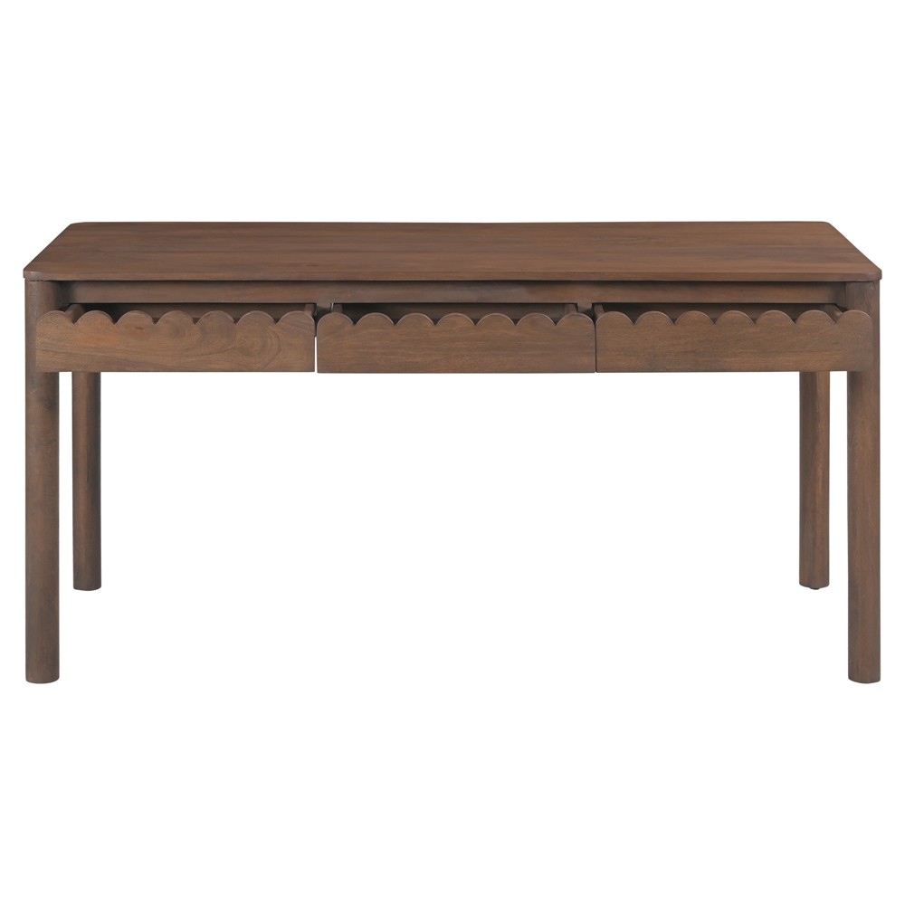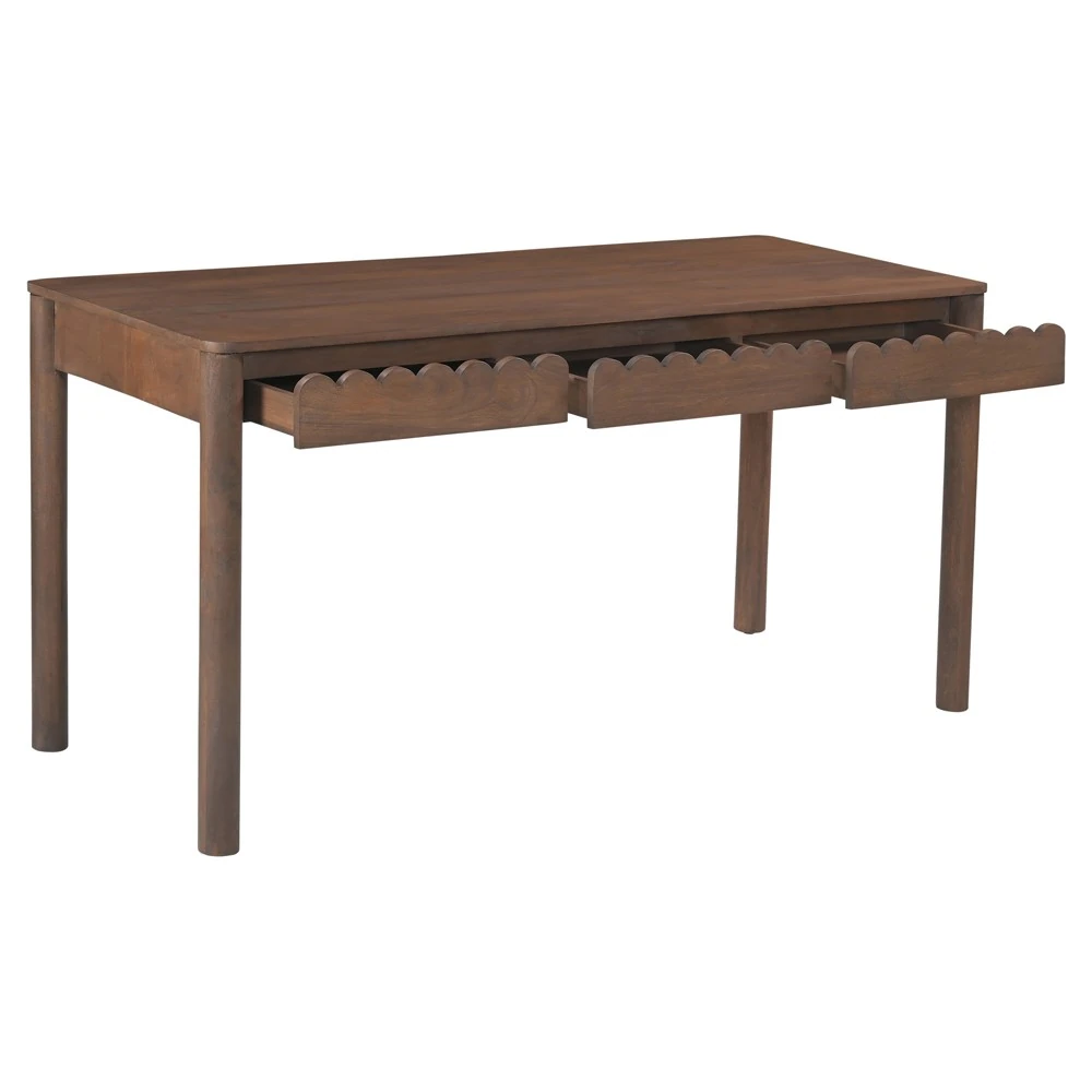 Bella Modern Classic Brown Mango Wood Scalloped Rectangular Desk