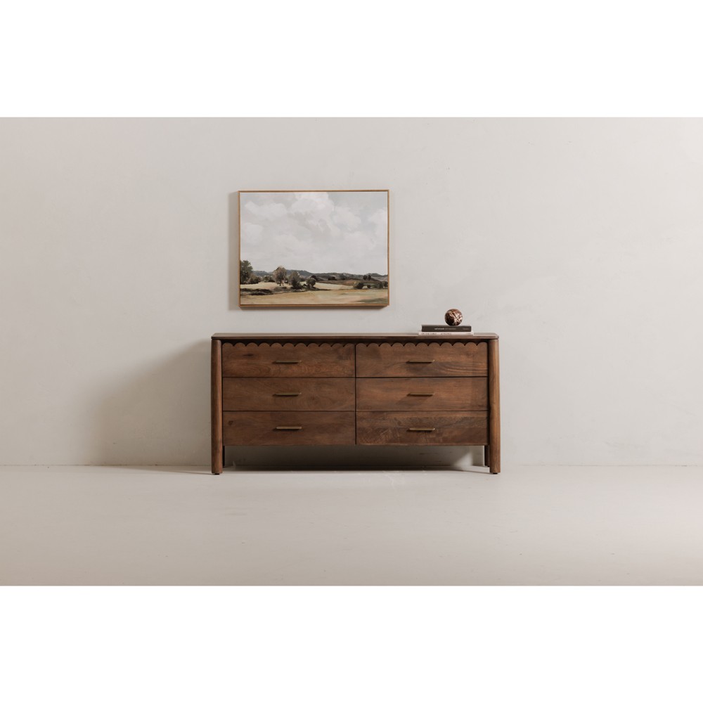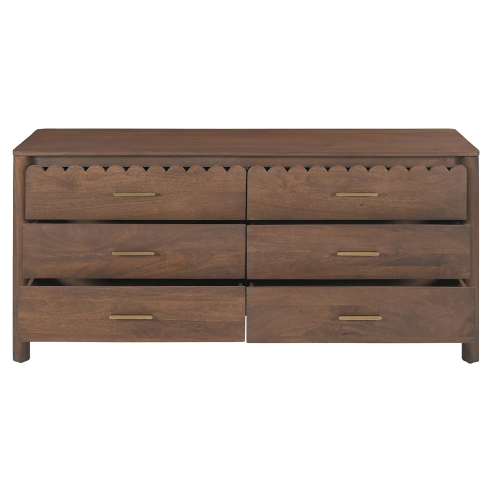 Bella Modern Classic Brown Mango Wood Scalloped Double Dresser