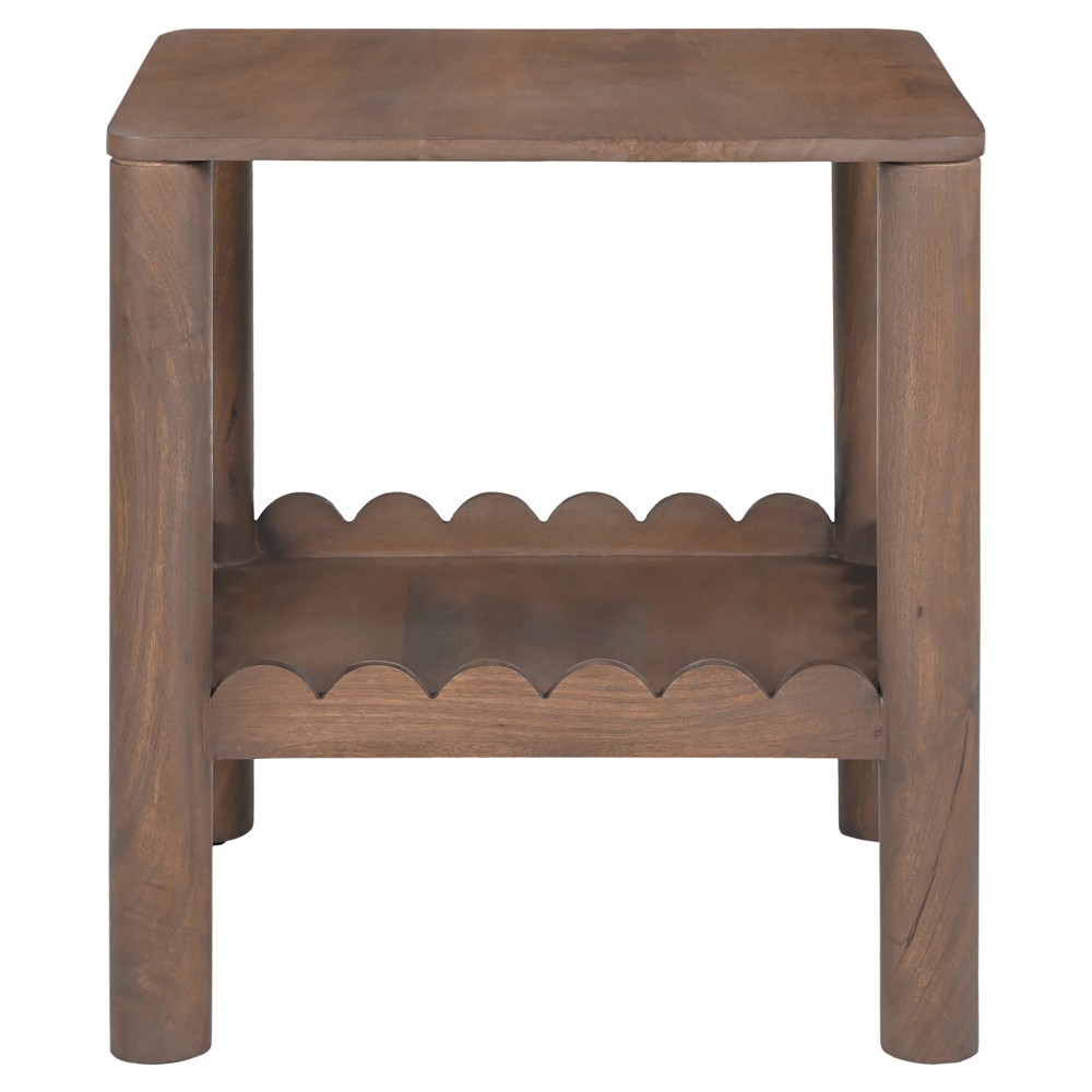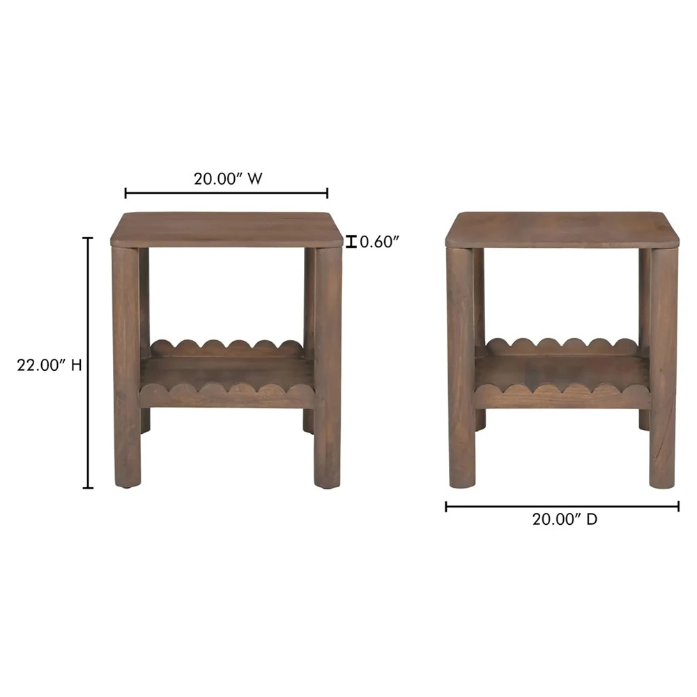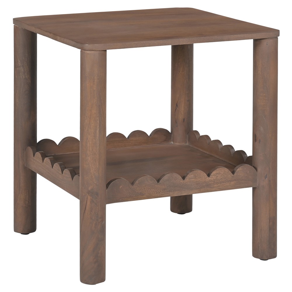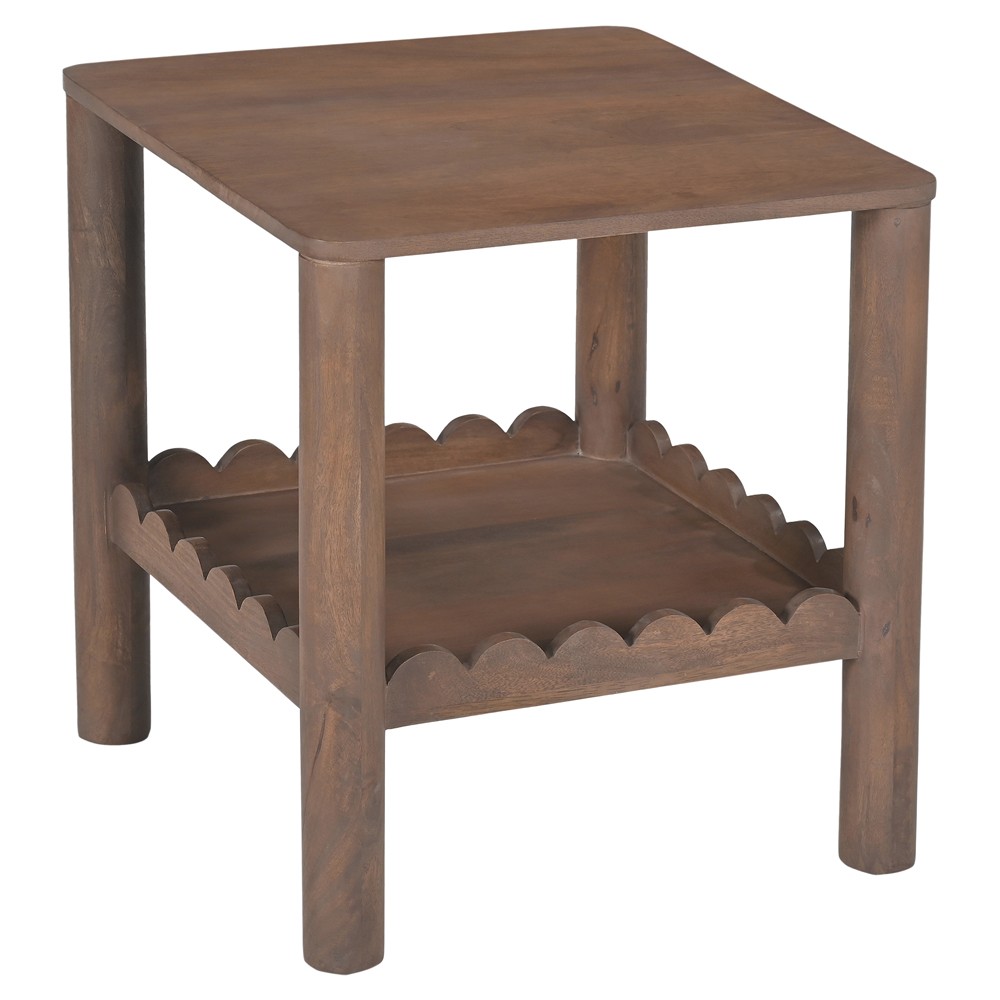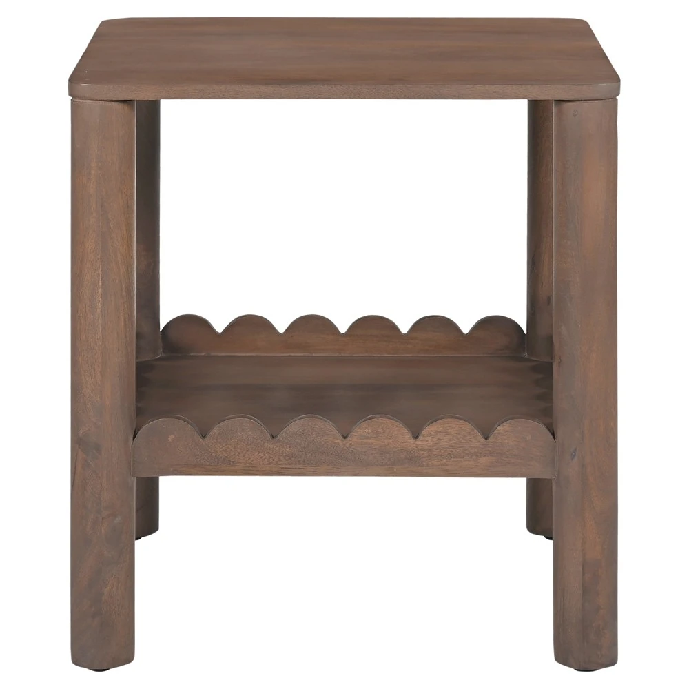 Bella Modern Classic Brown Mango Wood Scalloped Square Side Table