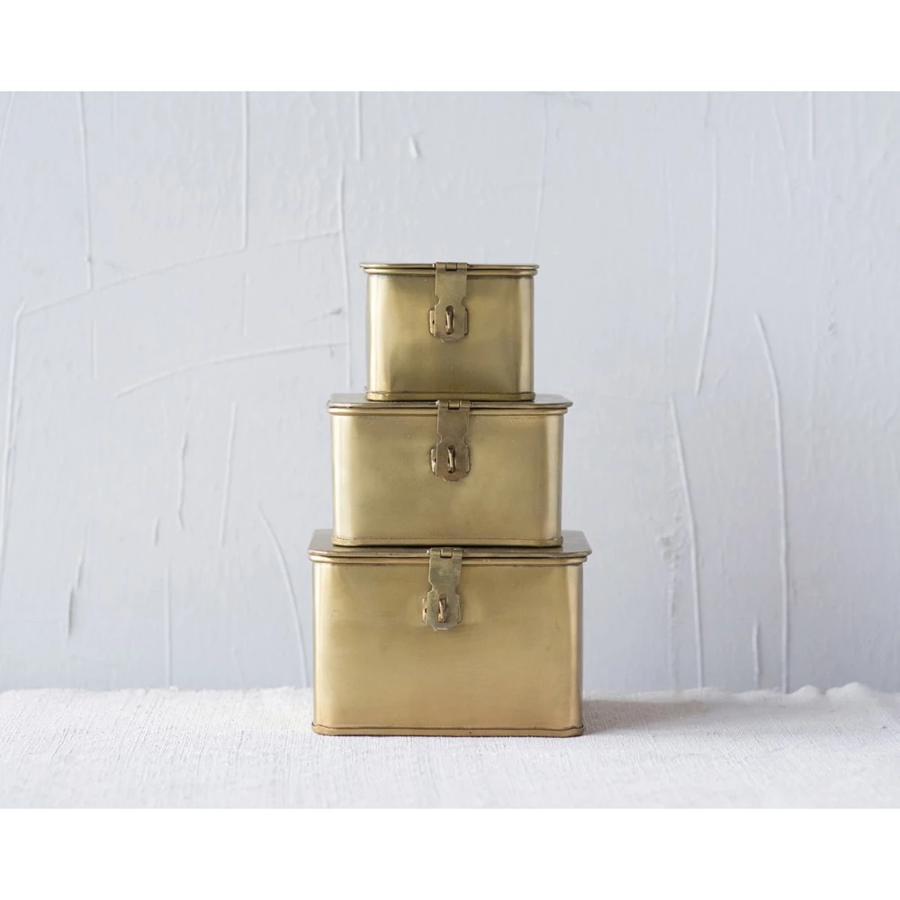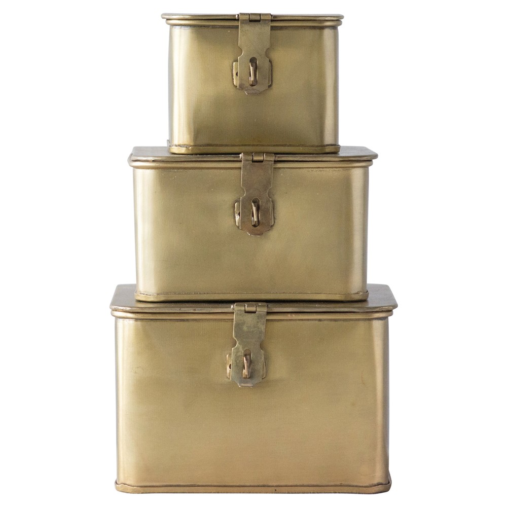 Staten Modern Gold Iron Rectangular Decorative Box - Set of 3