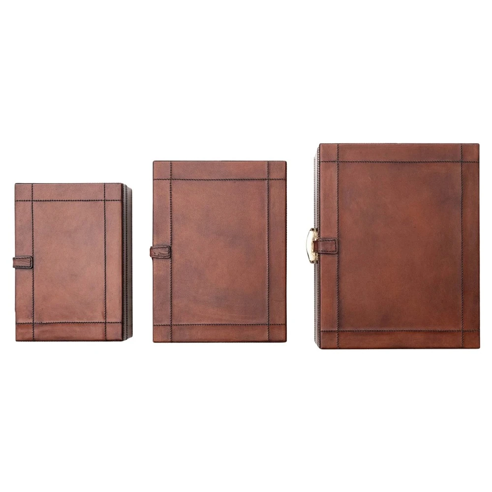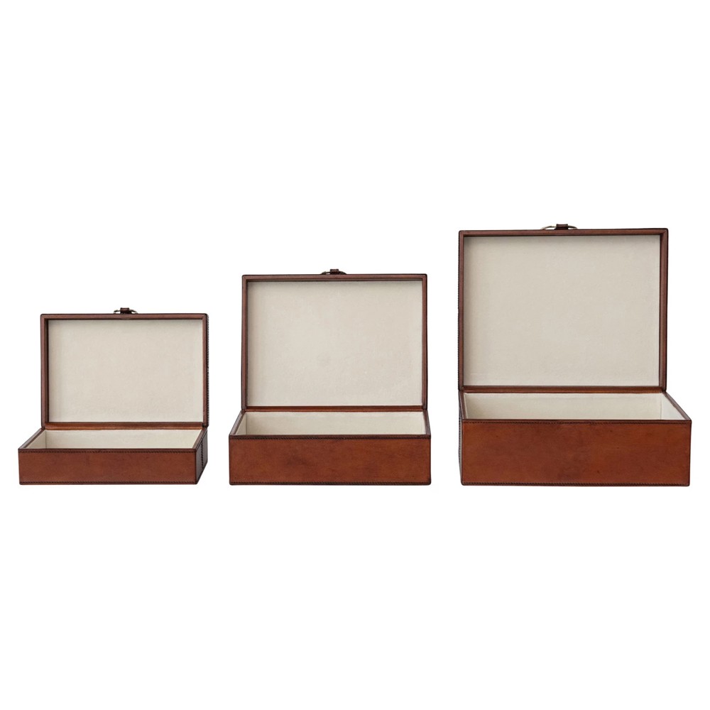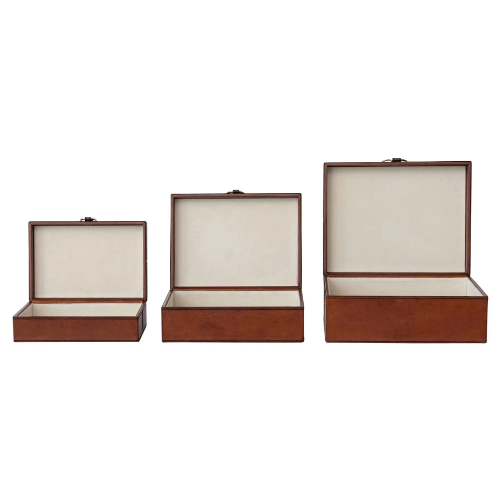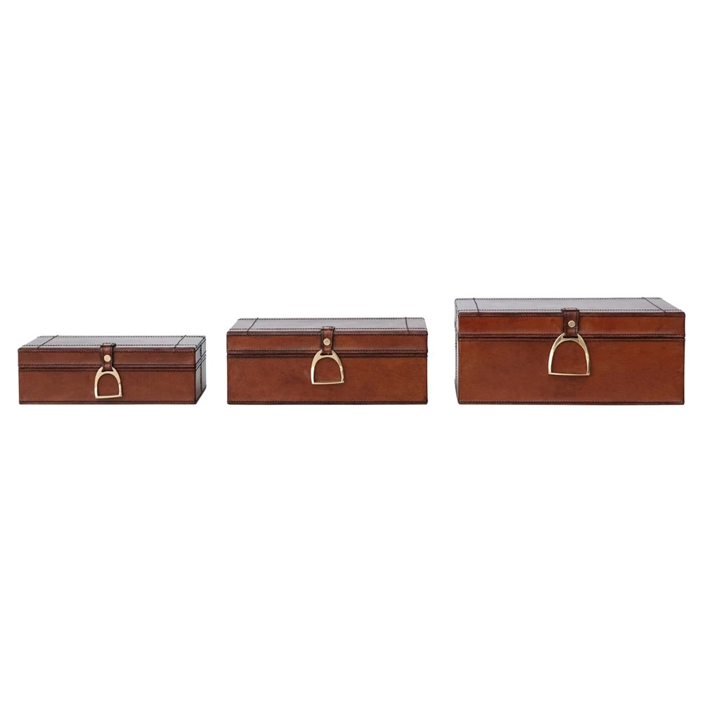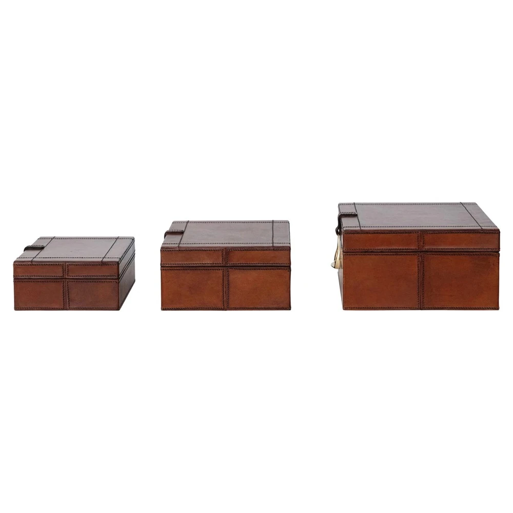 Charlee Traditional Brown Leather Rectangular Decorative Box - Set of 3