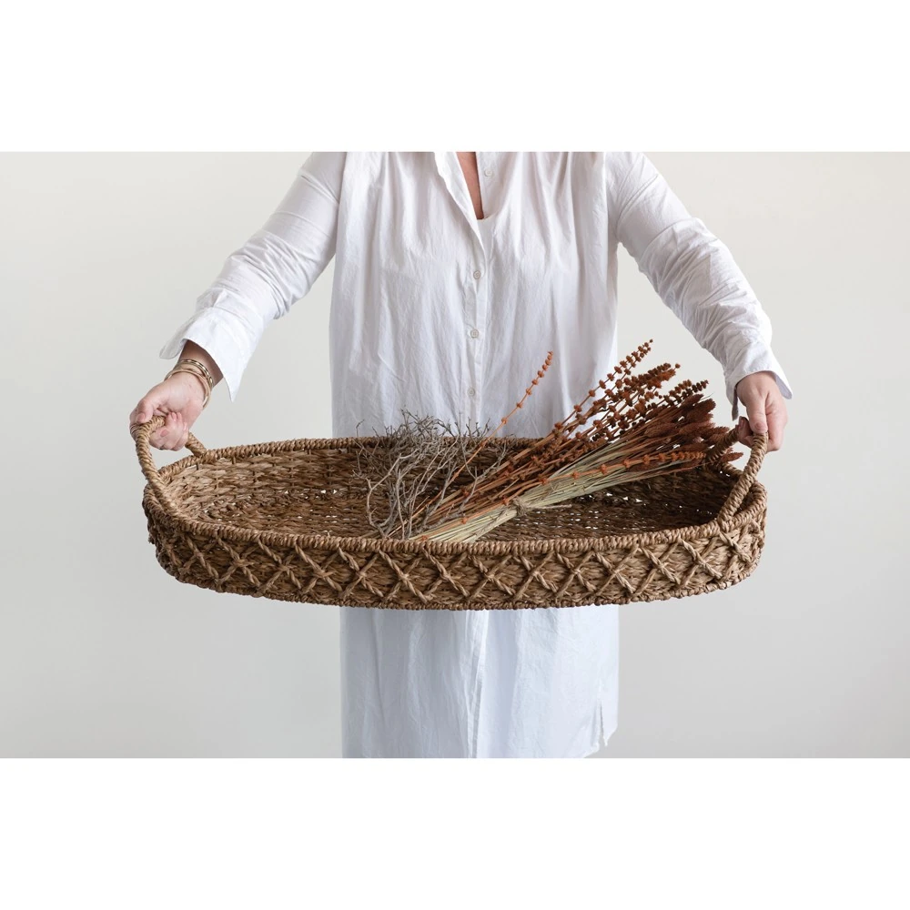 Bridgette Coastal Natural Woven Seagrass Oval Decorative Tray