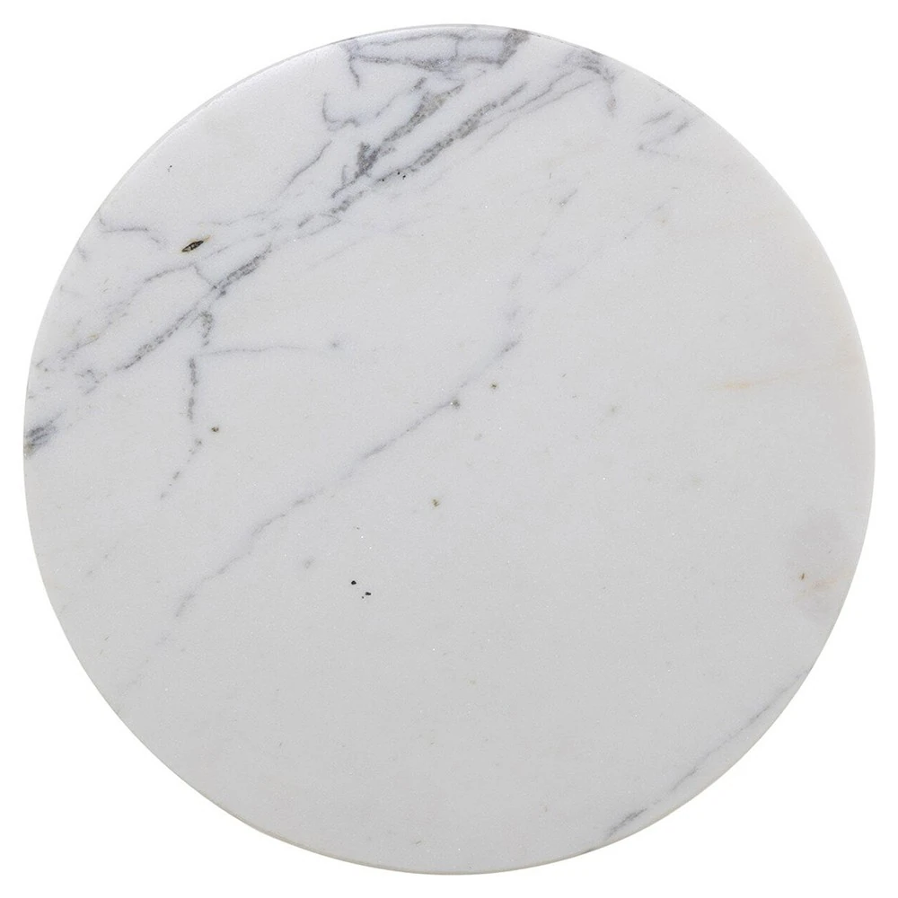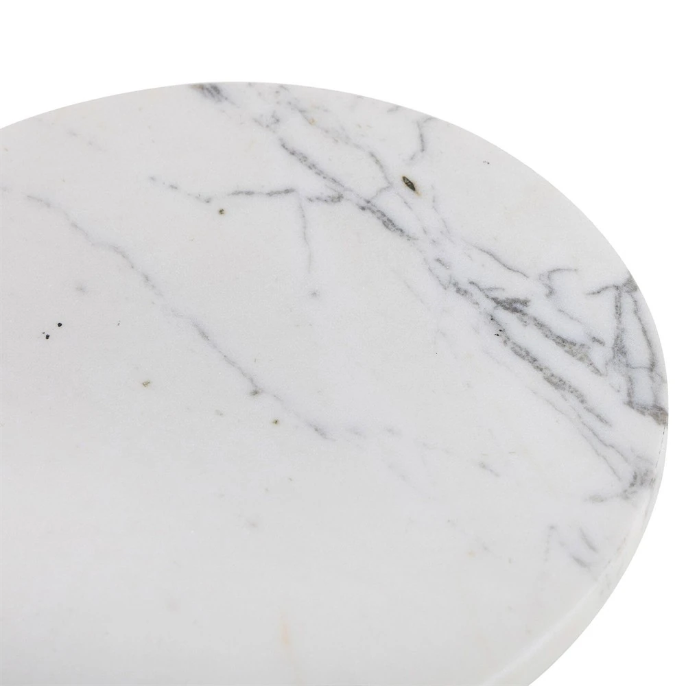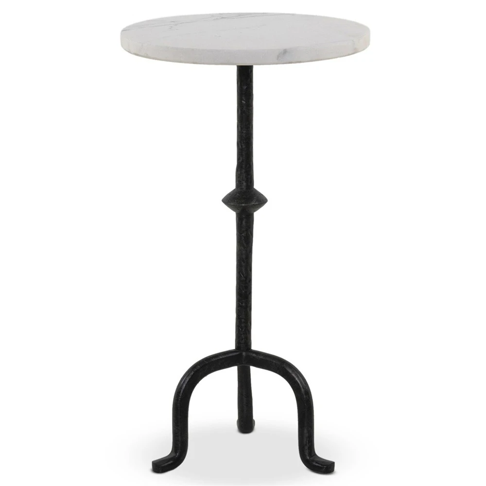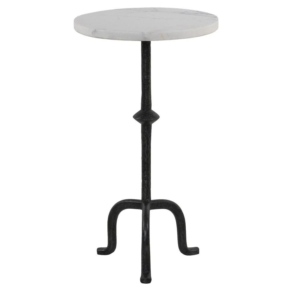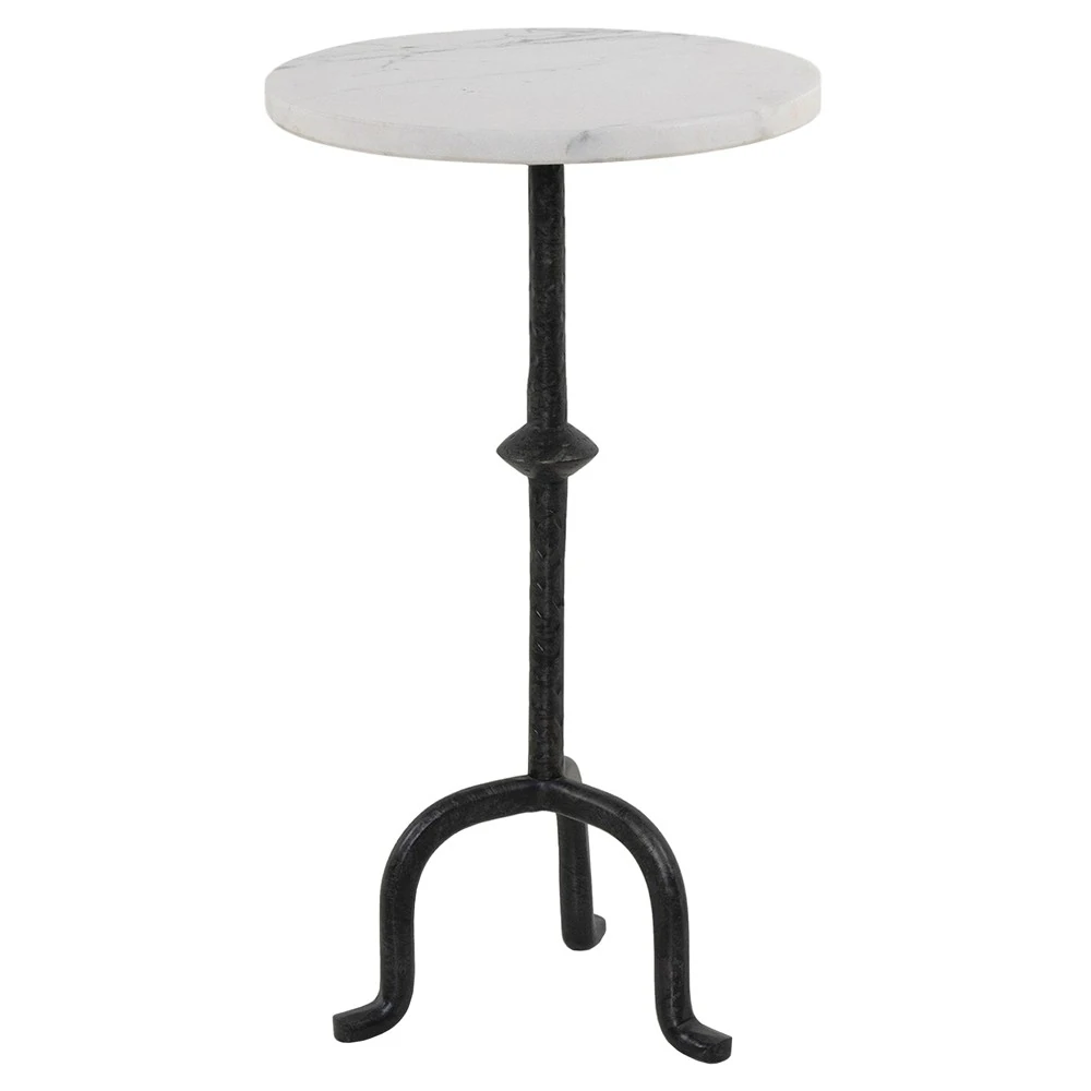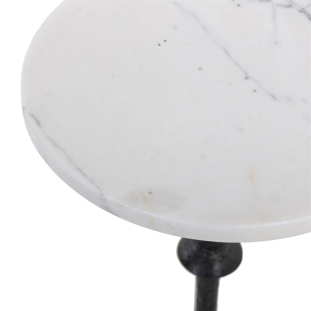 Hervey French Country White Marble Top Dark Grey Iron Pedestal Round Side Table