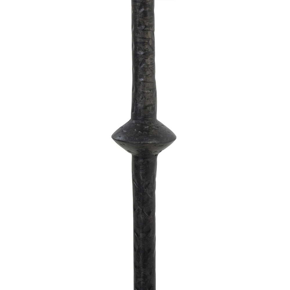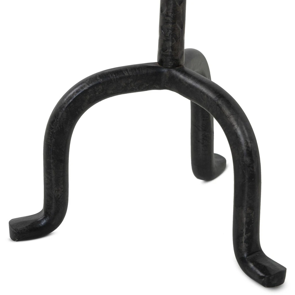 • Features a round top, 3 curved legs, and a textured cast metal turned post for an antiqued metalwork look
