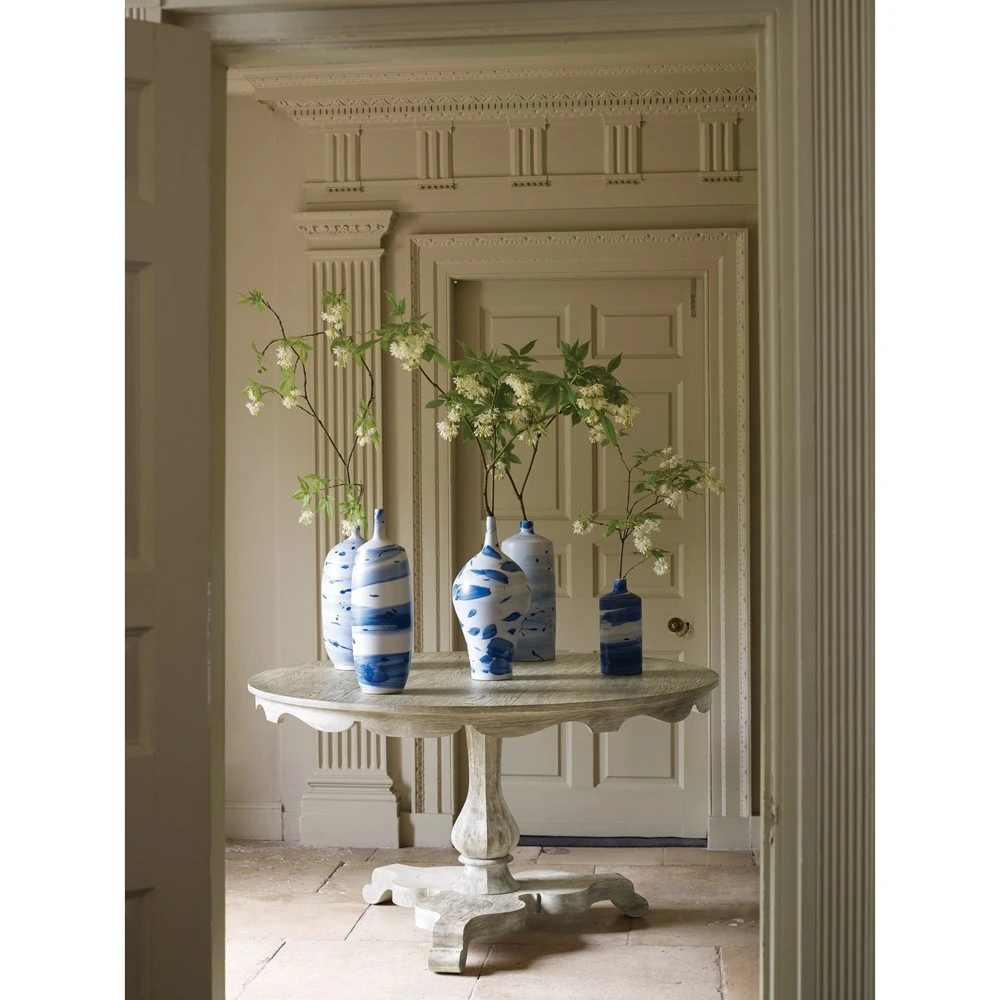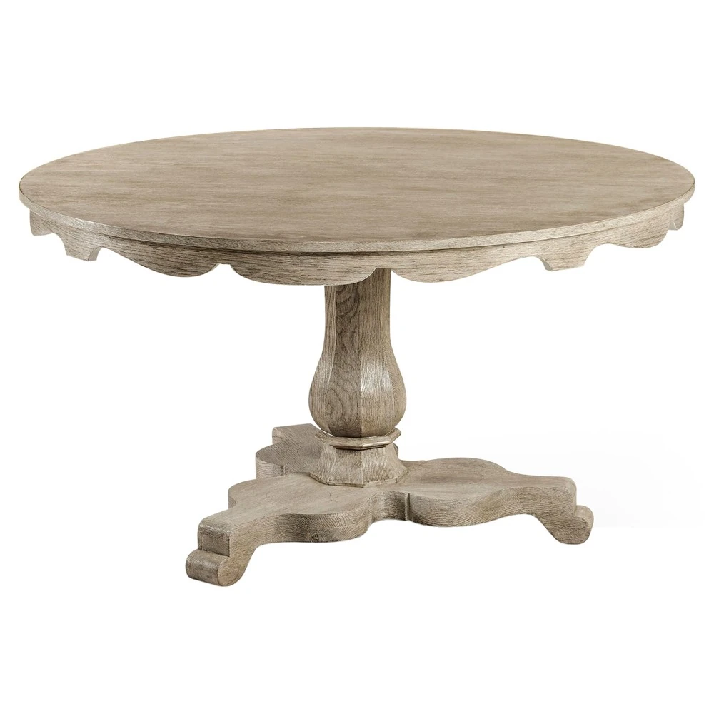 • Florentine French Country Cream Marble Grey Wood Pedestal Dining Table - 44"|Kathy Kuo Home