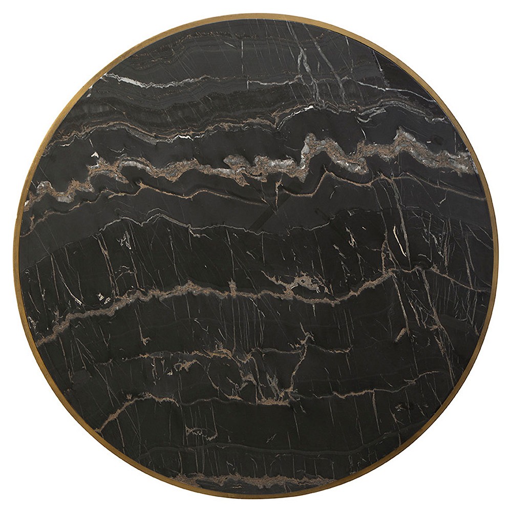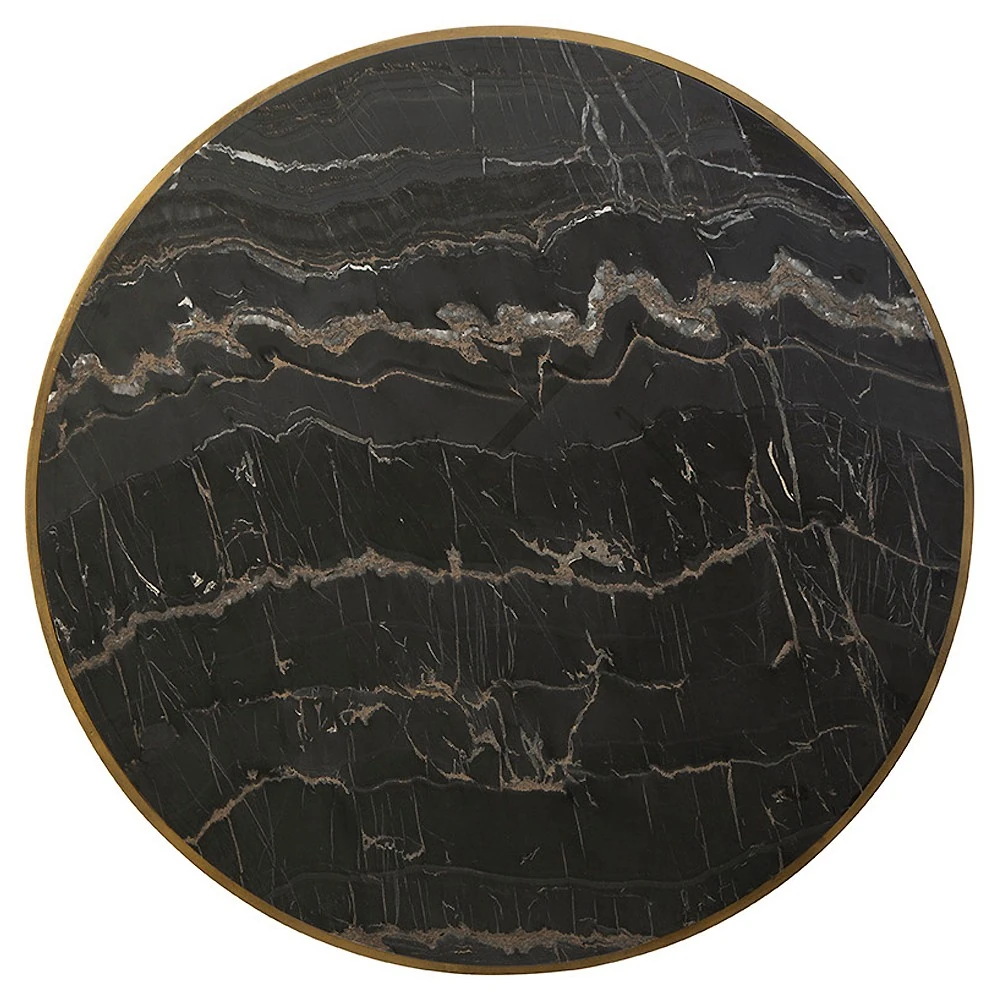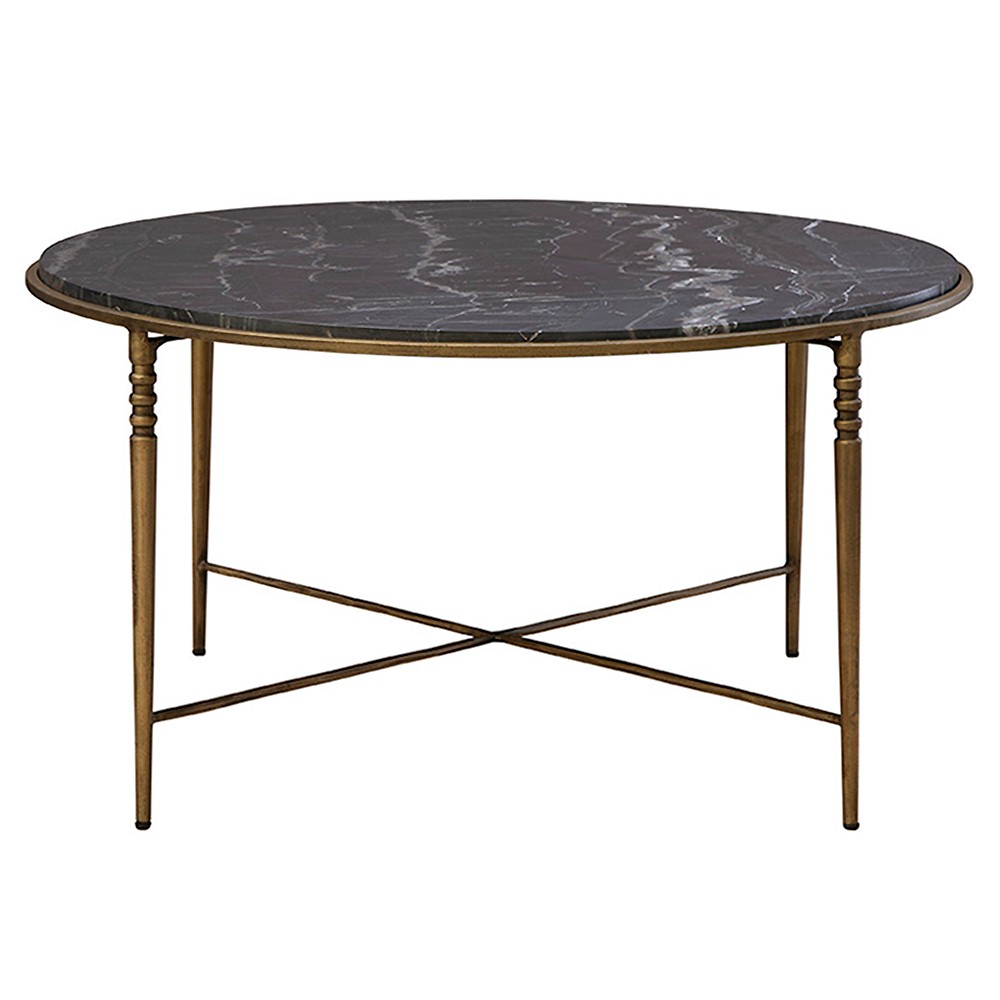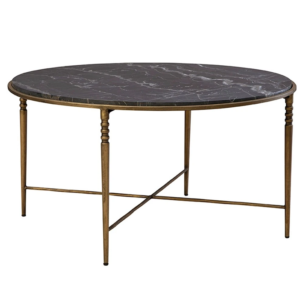 Emari French Country Black Marble Antique Brass Round Coffee Table