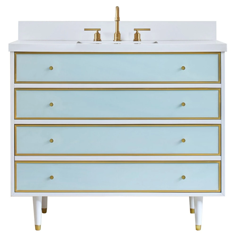Tracy French Country White Wood Seaglass Vanity Sink - 42"