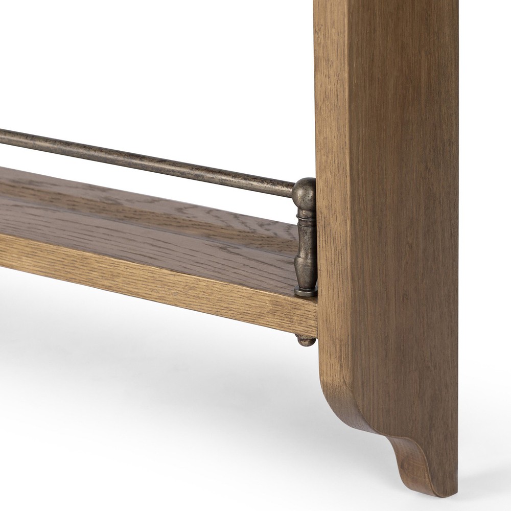 A design collaboration by Amber Lewis and Four Hands. Raw iron hardware and light, tan oak with subtle details form this wall plate rac ... more