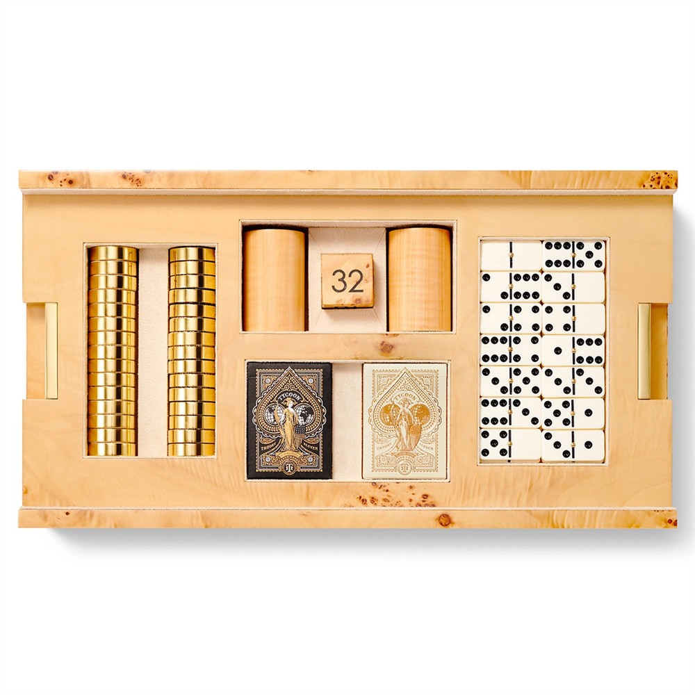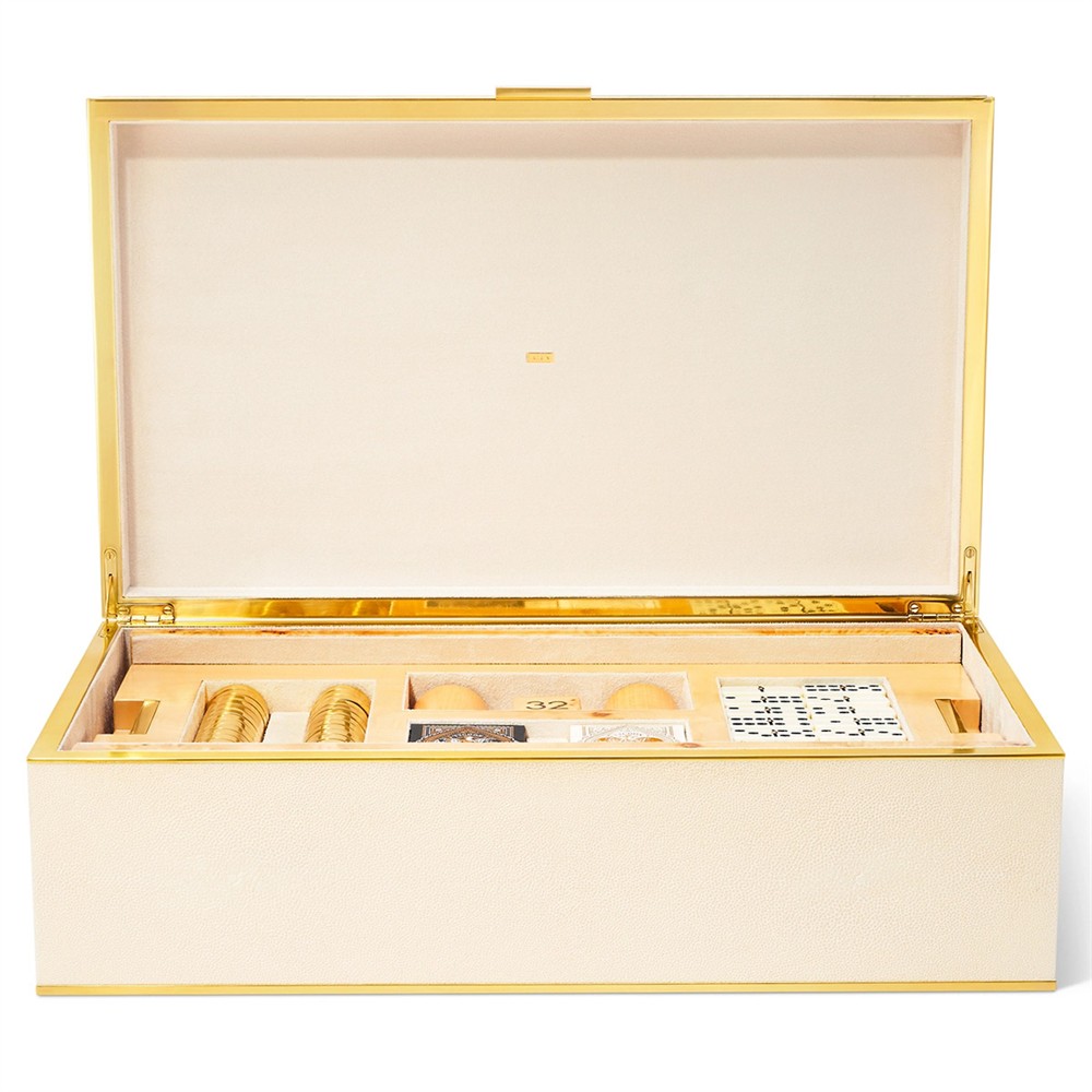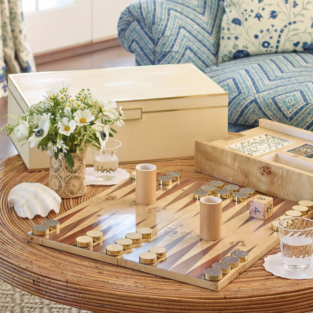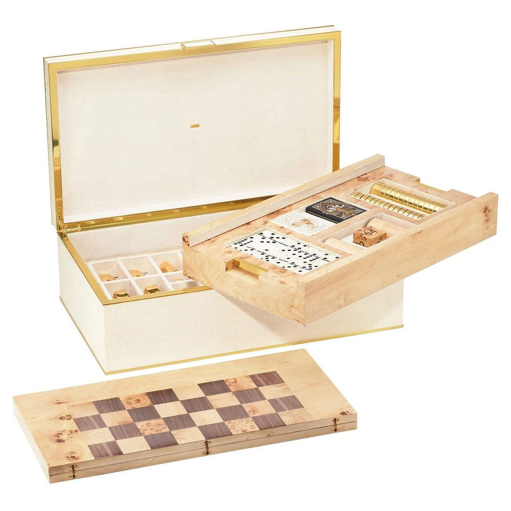 AERIN Updated Traditional Cream Shagreen Burl Wood 5 in 1 Game Set